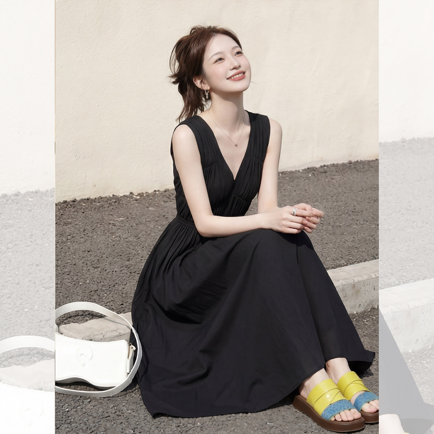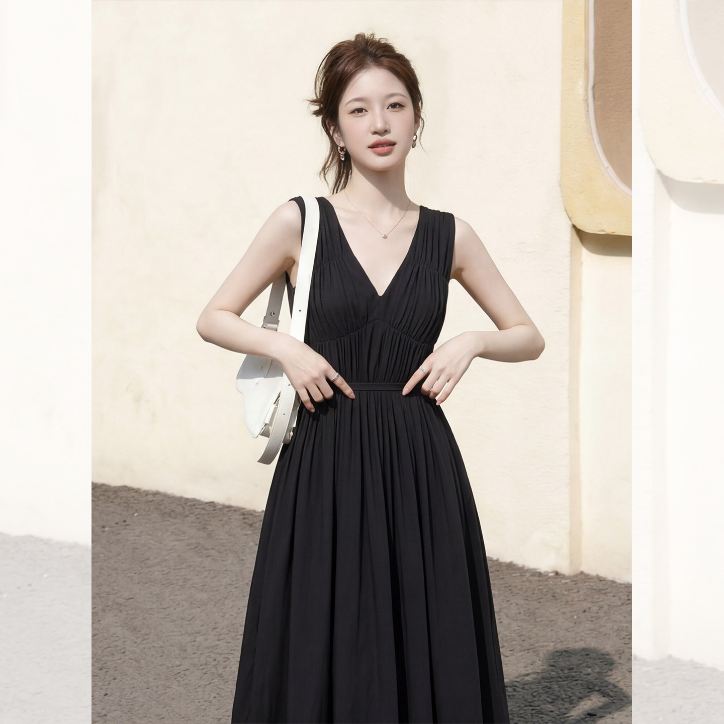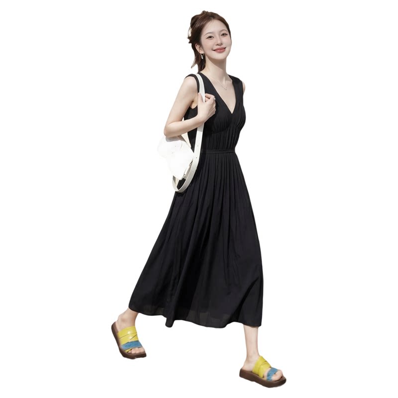 奢华2026夏季新款超好看复古小个子穿搭显瘦修身黑色无袖连衣裙女