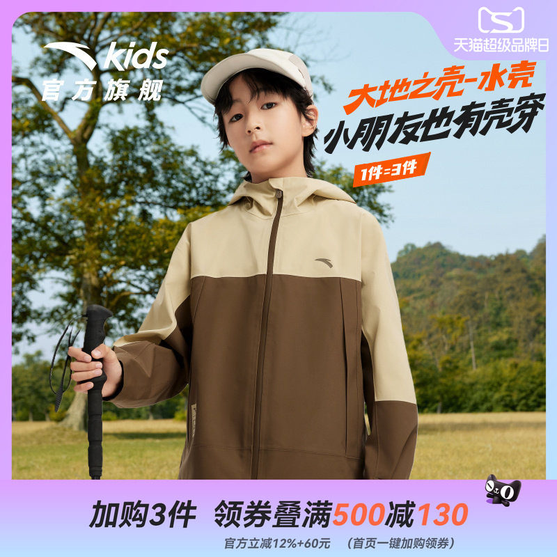 安踏儿童男女童冲锋衣2025秋冬款透气大地之壳防风防水运动薄外套