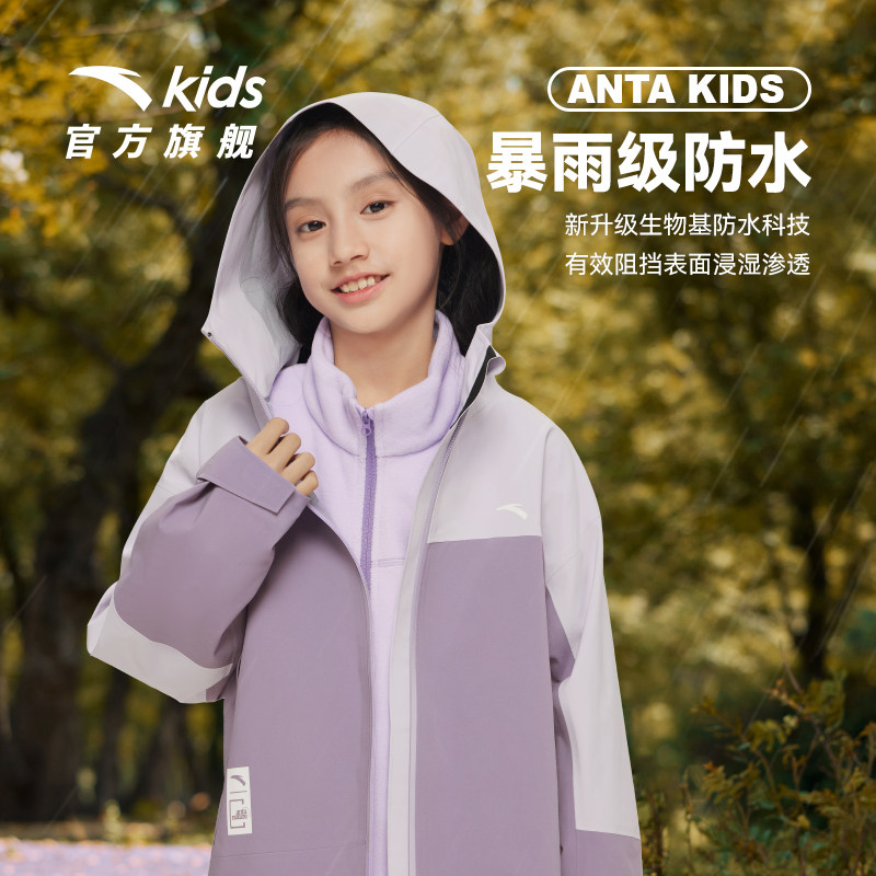 【清仓价】安踏儿童女童冲锋衣三合一两件套摇粒保暖外套冬防风雨