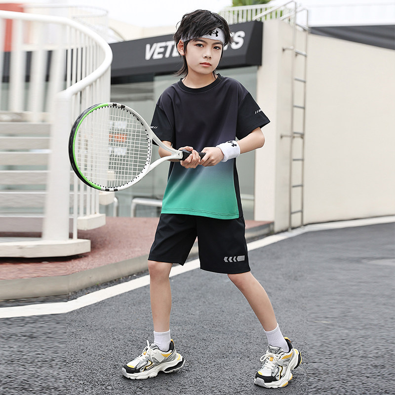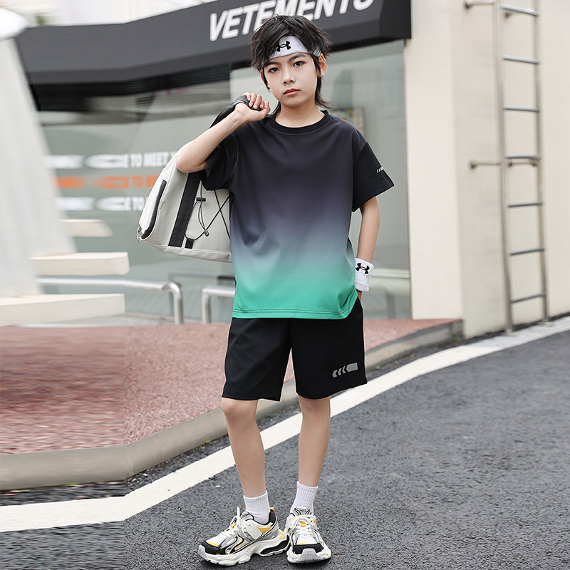 儿童速干运动男童套装夏季薄款夏装篮球服冰丝跑步训练服