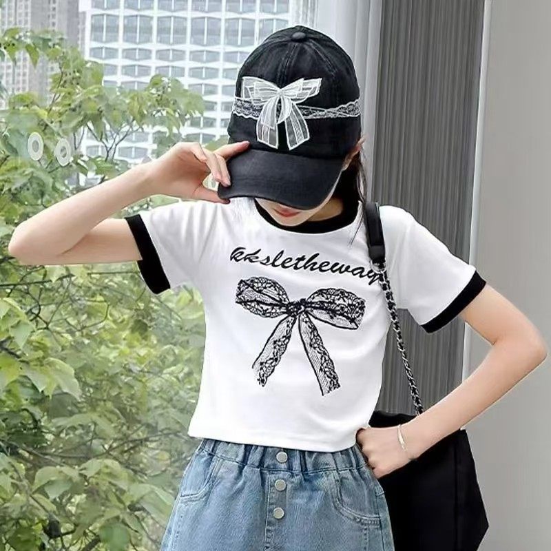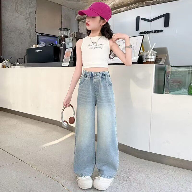 女童夏装套装洋气童装2026新款女中大童短袖牛仔裤两件套潮小女孩