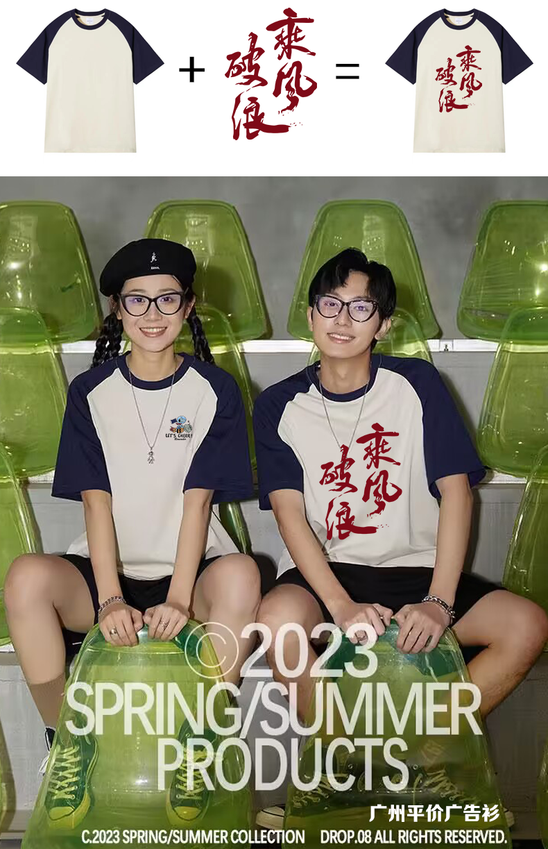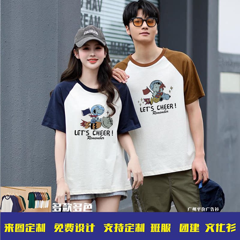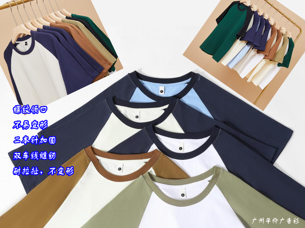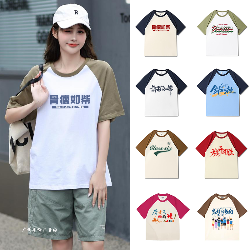 班服拼色纯棉重磅T恤定制印logo工作服撞色插肩短袖diy团建文化衫