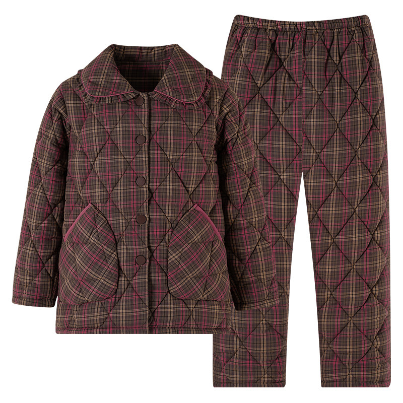 猫人睡衣女士冬季三层加厚加绒梭织纯棉夹棉珊瑚绒秋冬家居服