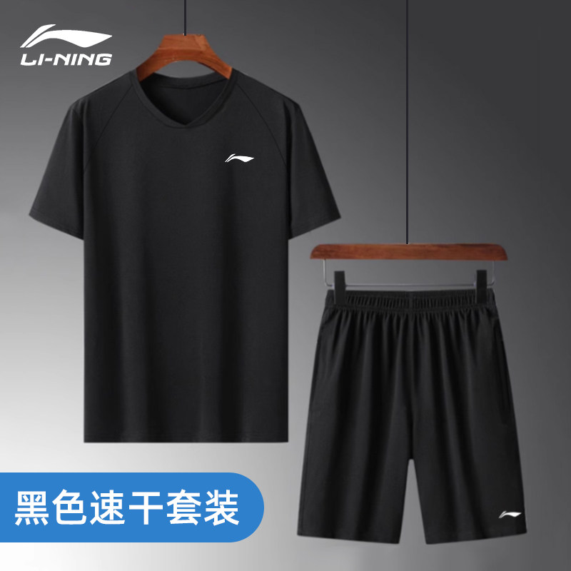李宁速干运动套装男休闲T恤 短袖短裤男款健身训练篮球跑步冰丝夏