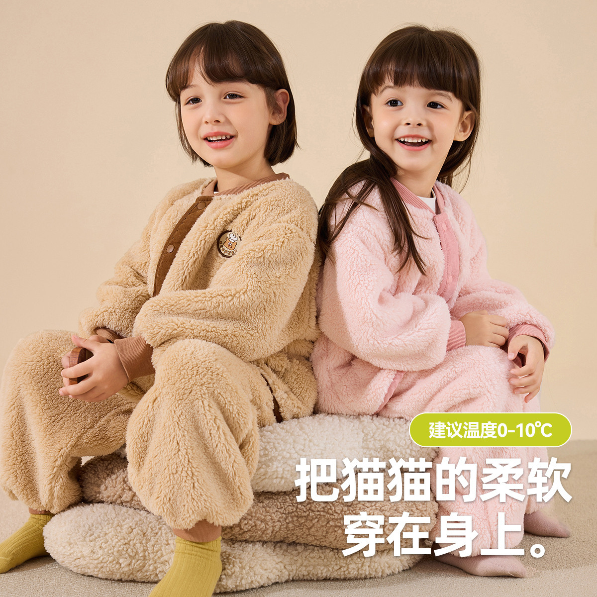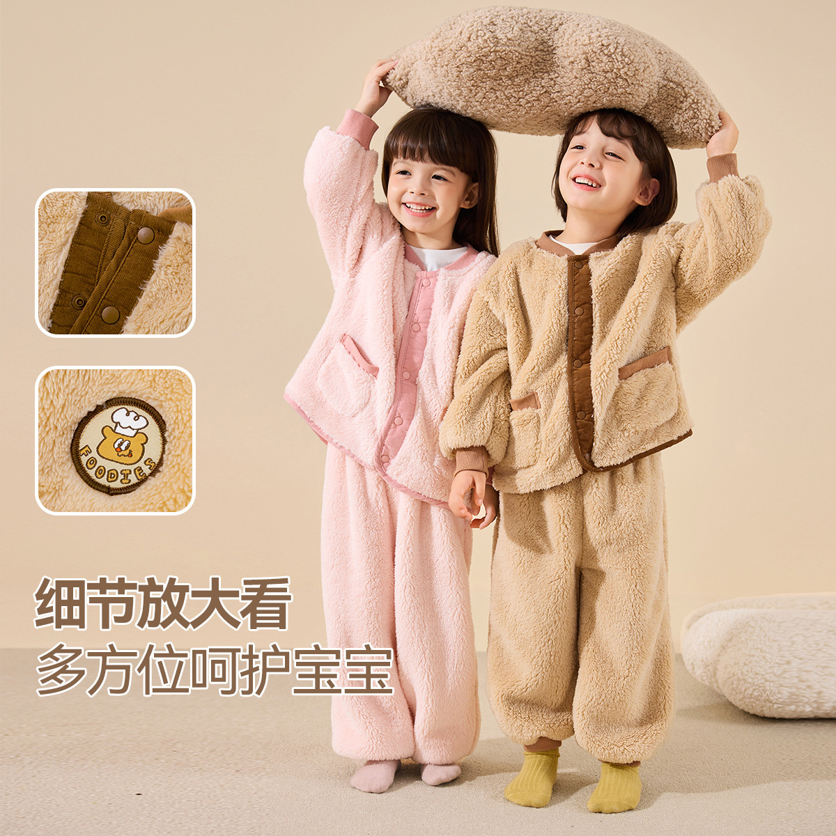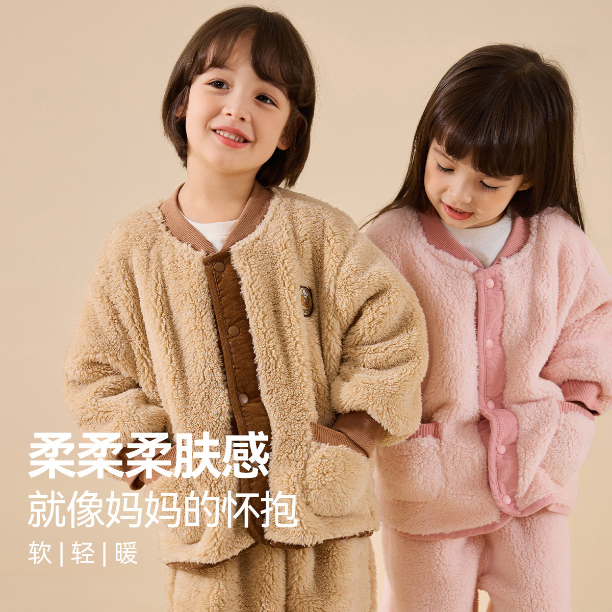 嘟嘟家男童家居服套装冬季儿童加厚上衣裤子女童绒睡衣冬款小童装