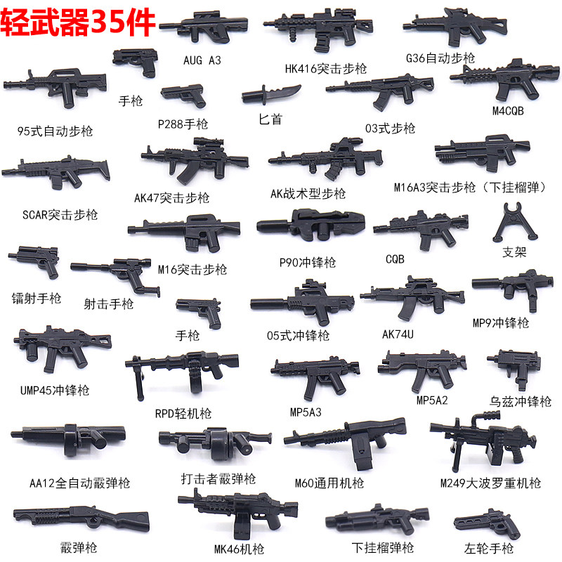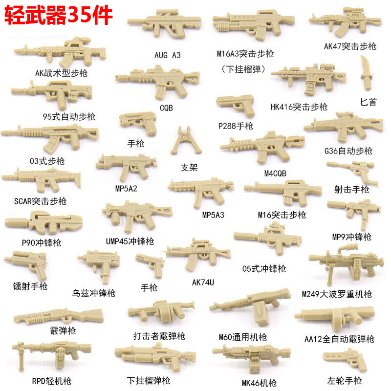 兼容益智特种兵军事人仔现代装备武器积木配件机枪塑胶小颗粒模型