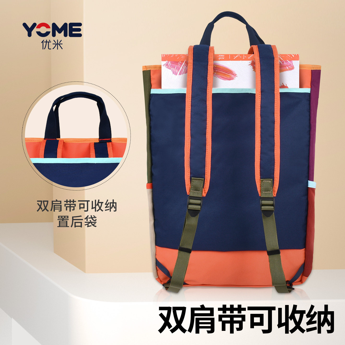 香港YOME小学生补习袋初中学生大容量手提双肩补课包男女游学书包