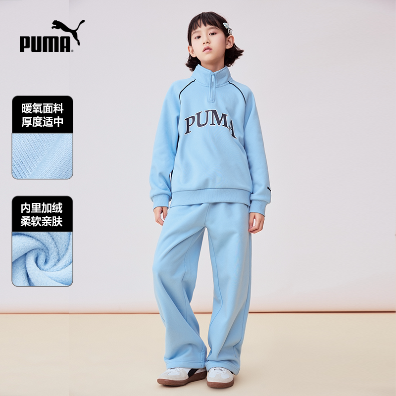 PUMA彪马儿童加绒套装新款秋冬青少年运动服半拉链翻领卫衣裤两件