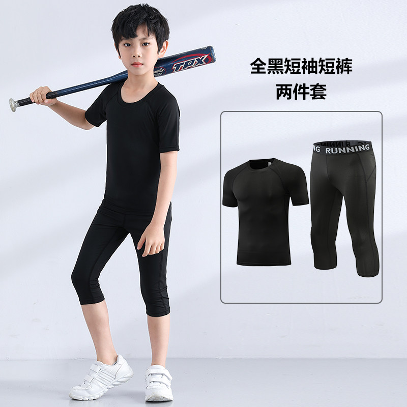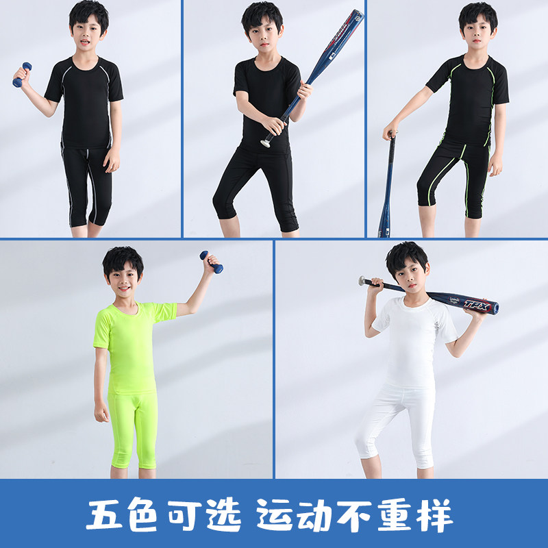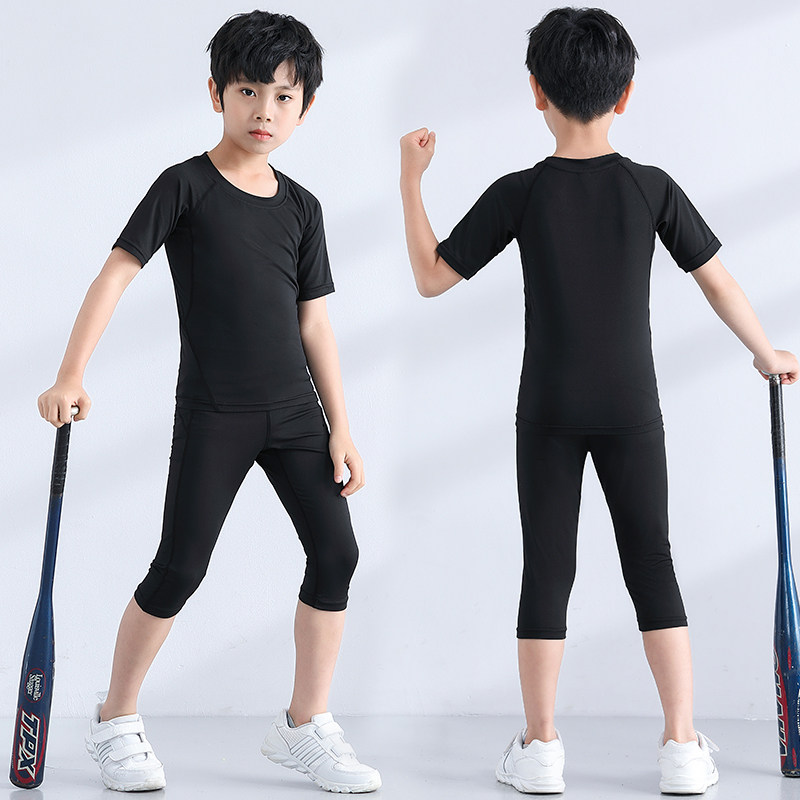 夏季儿童紧身衣训练服跑步运动短袖套装篮球足球弹力速干衣健身服