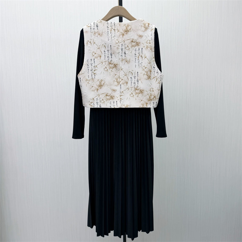 S●2026春季新品 新中式套装女气质盘扣马甲长袖连衣裙两件套577