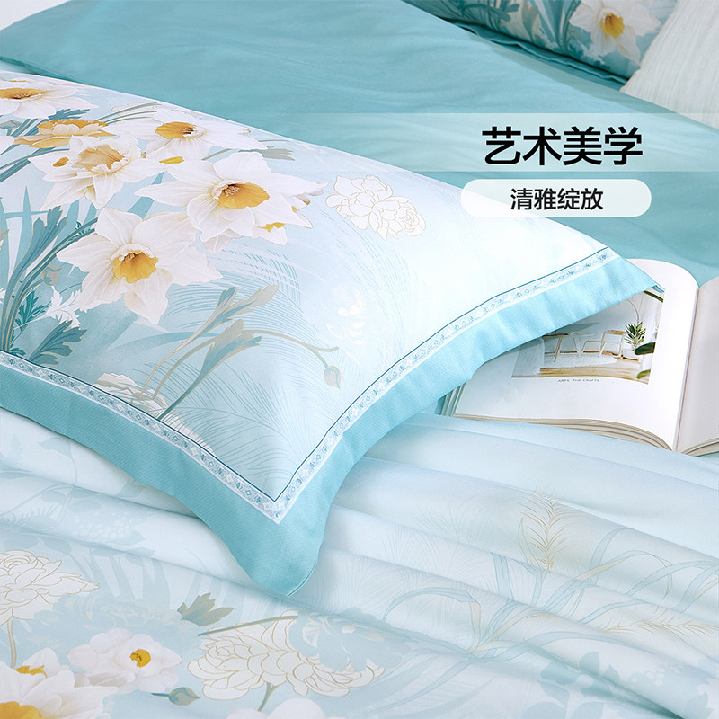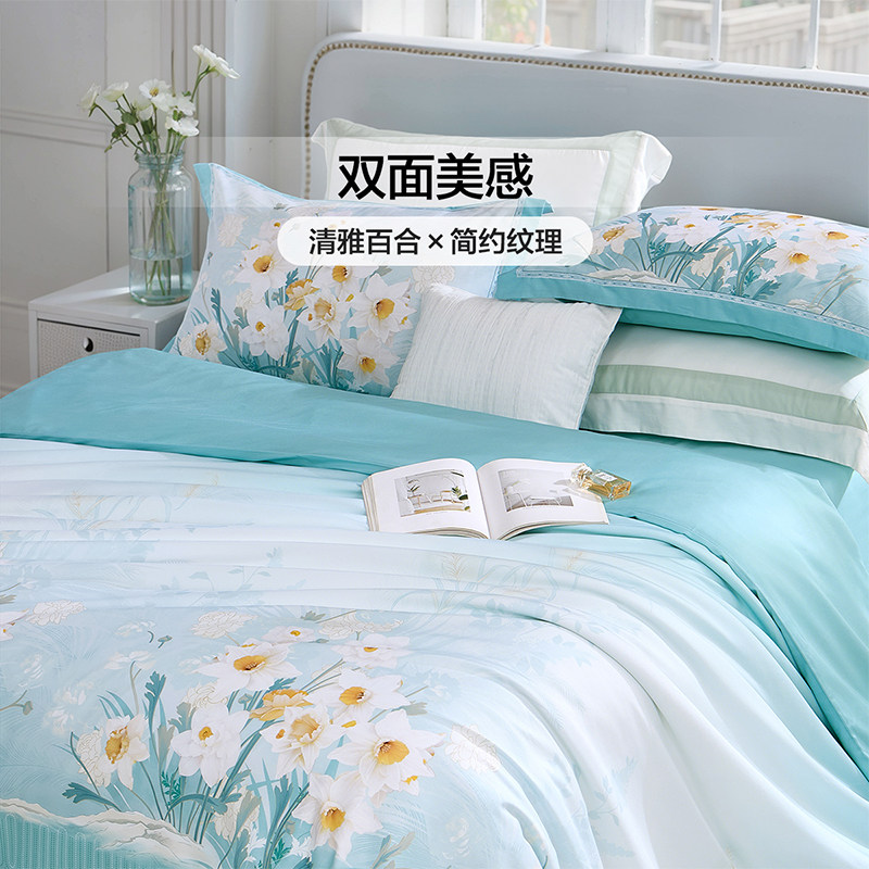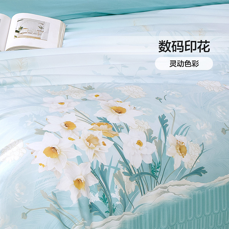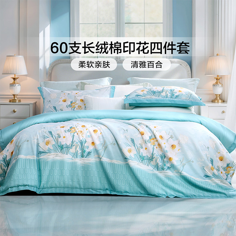 富安娜60支印花四件套纯棉全棉被套轻奢高级感主卧室被罩床上用品