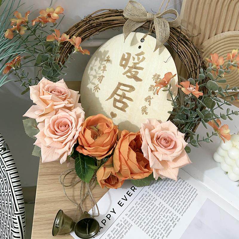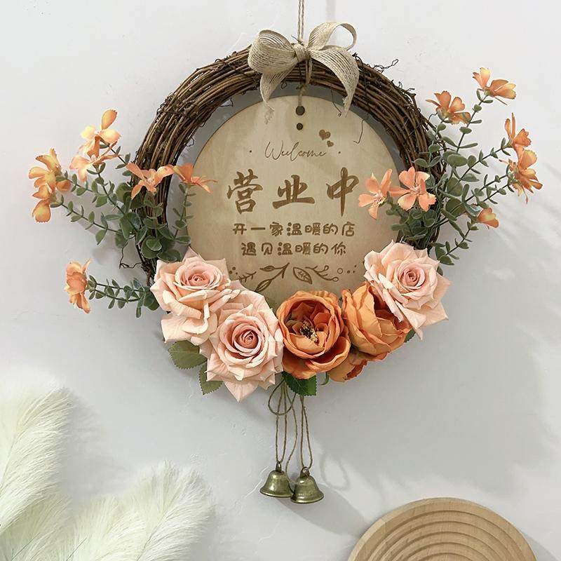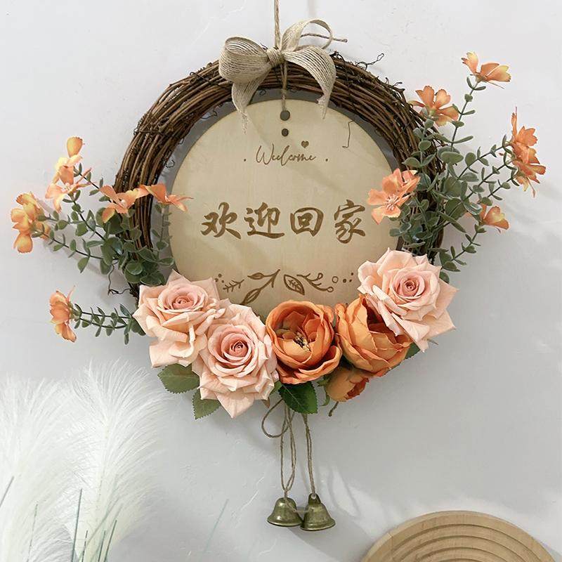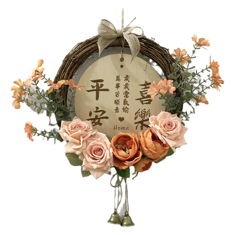 新年墙面装饰入户门客厅卧室花环挂饰店铺墙壁仿真花提示平安挂牌