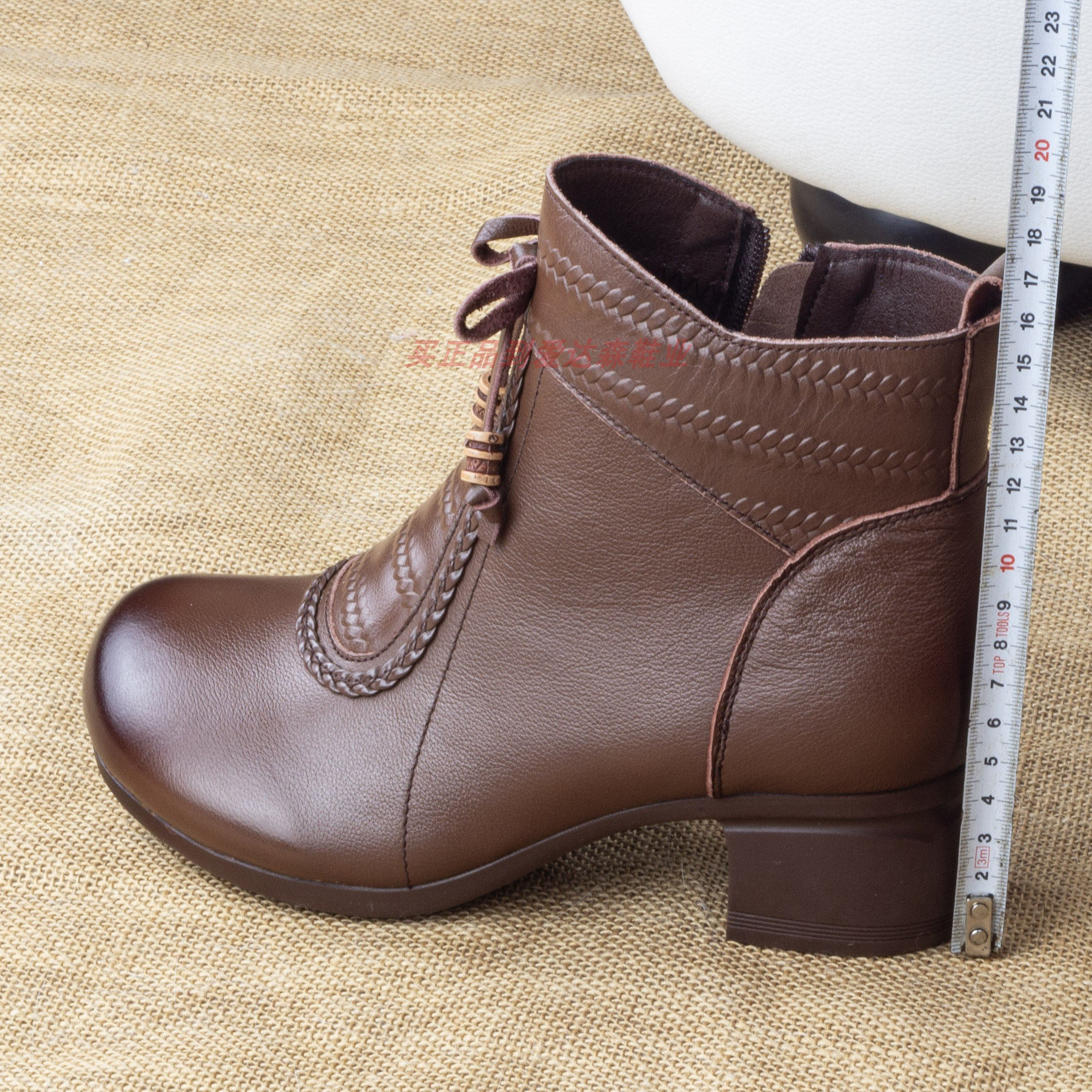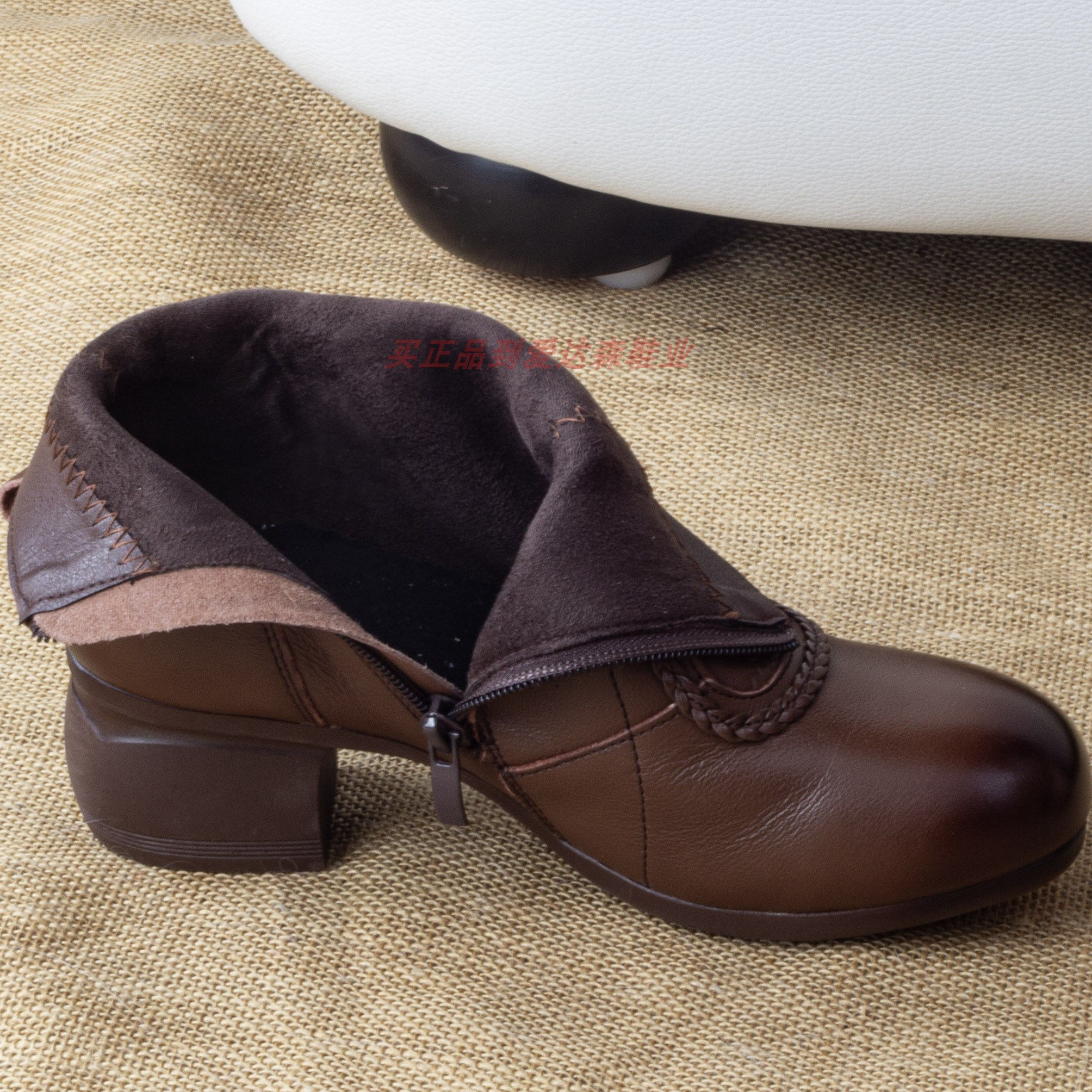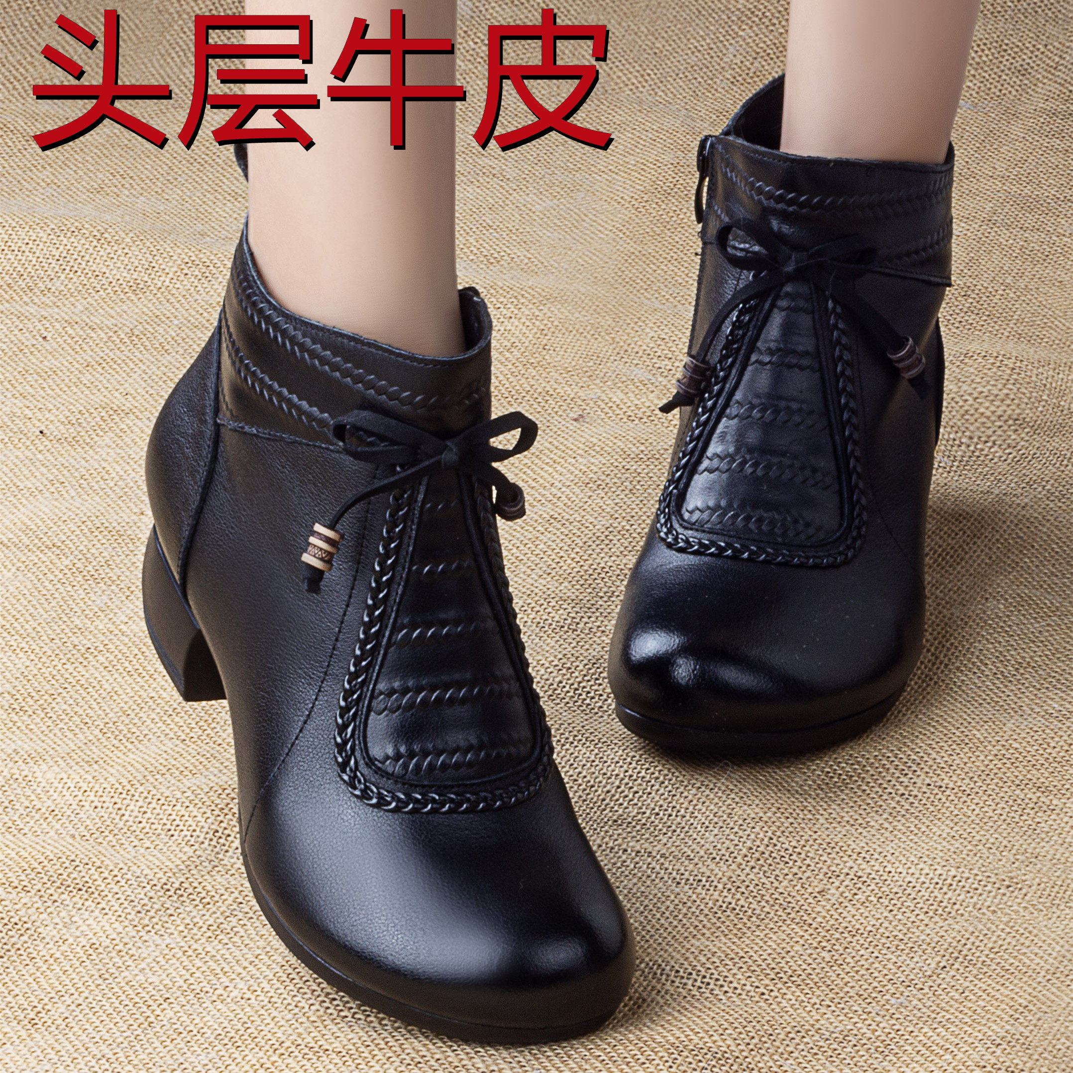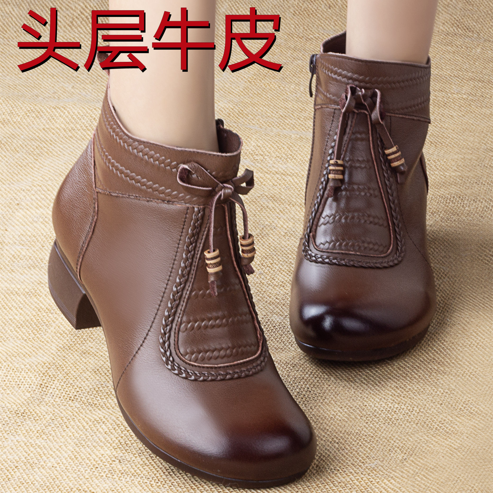 复古真皮单靴女2025春秋新款中粗跟软皮女短靴头层牛皮加绒马丁靴