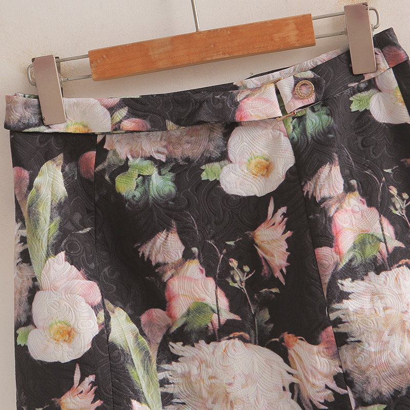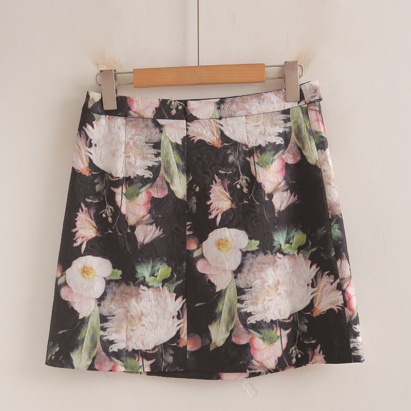 专柜569元【S】高端品牌女新款高腰后拉链拉花双层A字半身裙