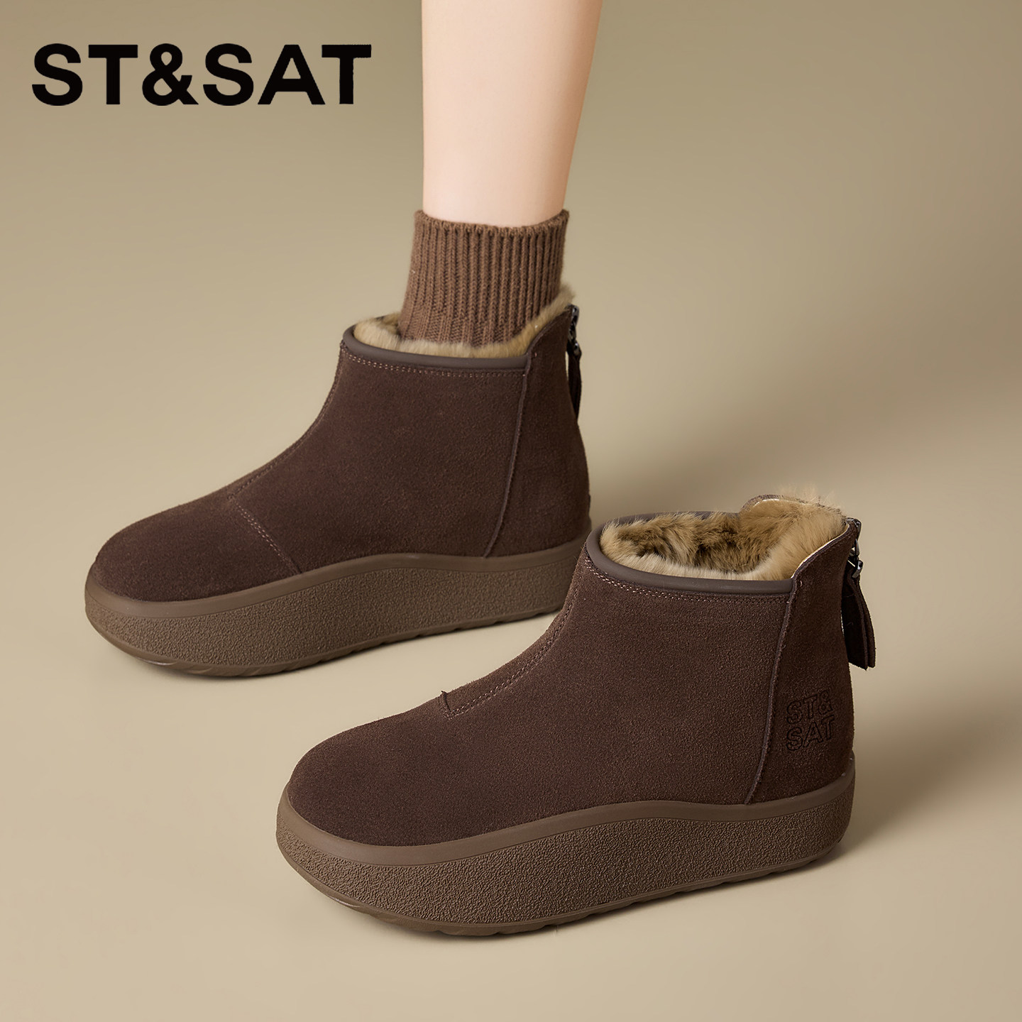 星期六雪地靴女款2025新款冬季加绒加厚保暖棉靴真皮防水防滑棉鞋