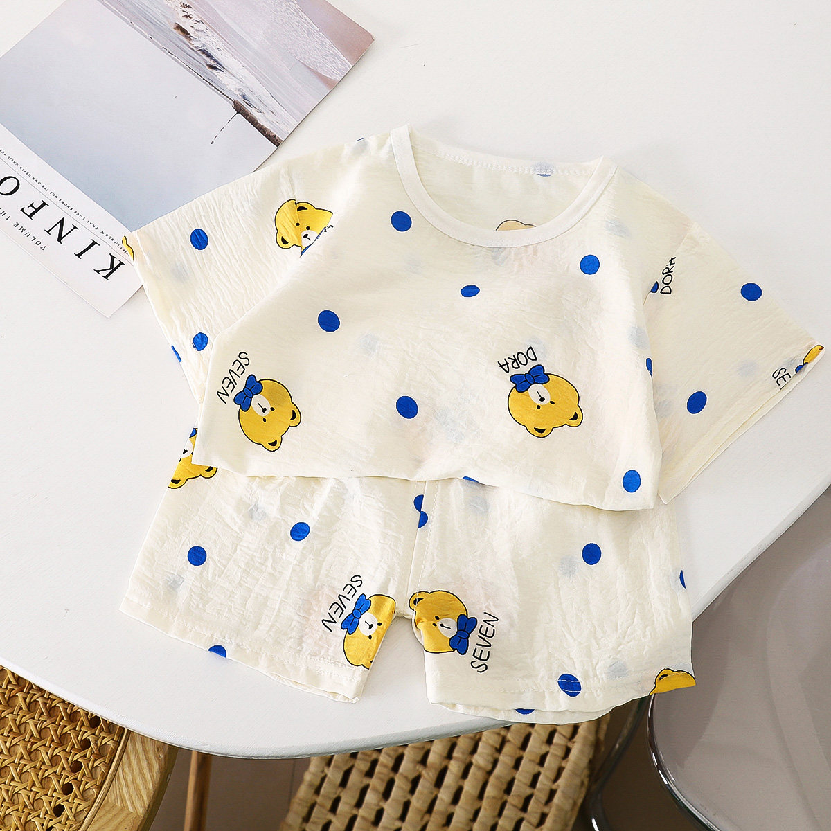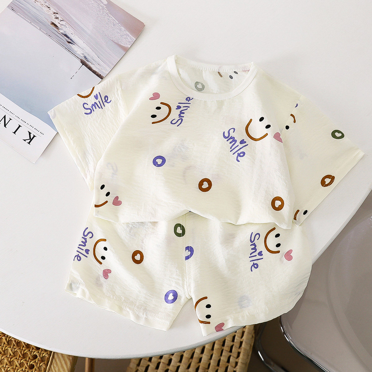儿童韩版休闲短袖套装夏季云朵棉家居服小男孩女童宝宝短裤空调服