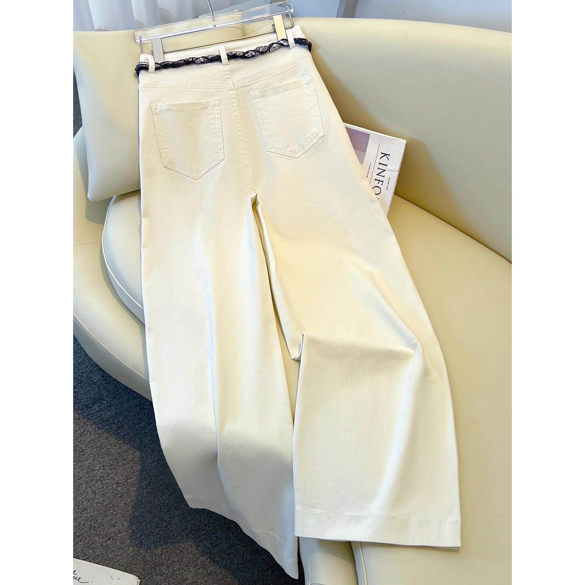 拉夏贝尔白色阔腿牛仔裤女秋冬季2026新款今年流行爆款高腰直筒裤
