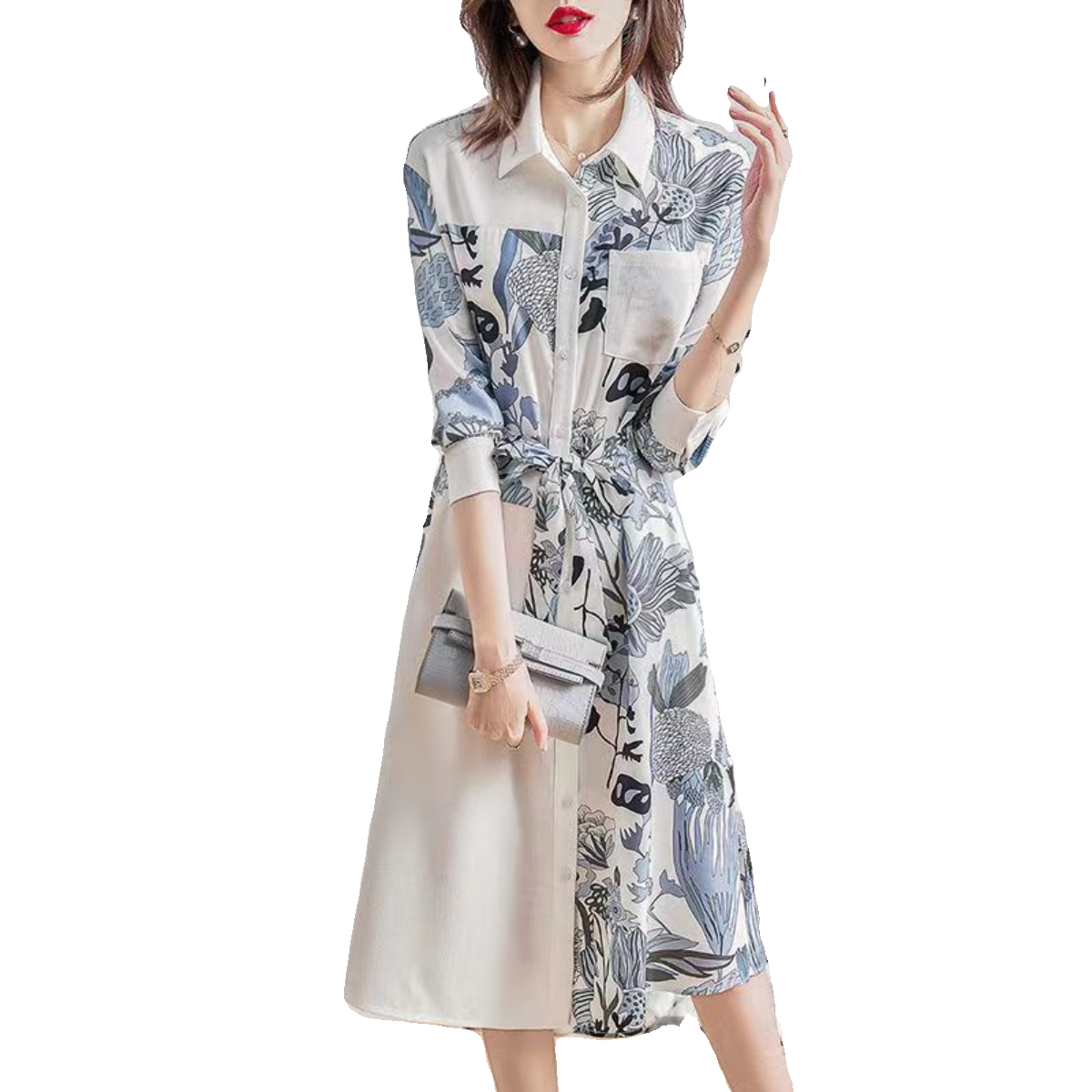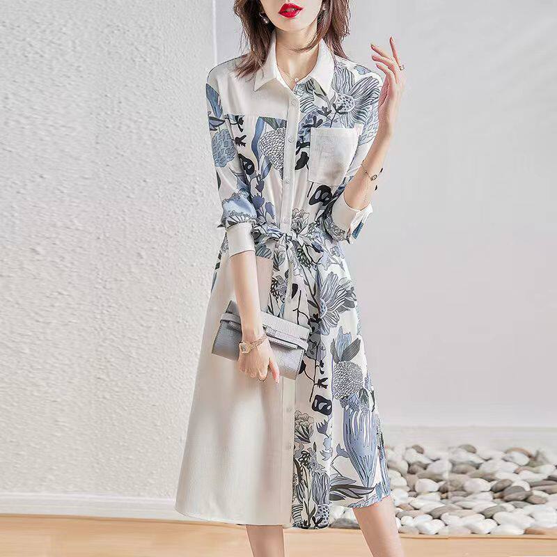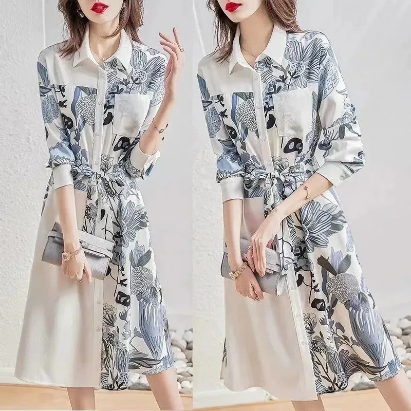 大码胖mm中长款衬衫连衣裙女2026春秋新款小香风气质修身收腰裙子