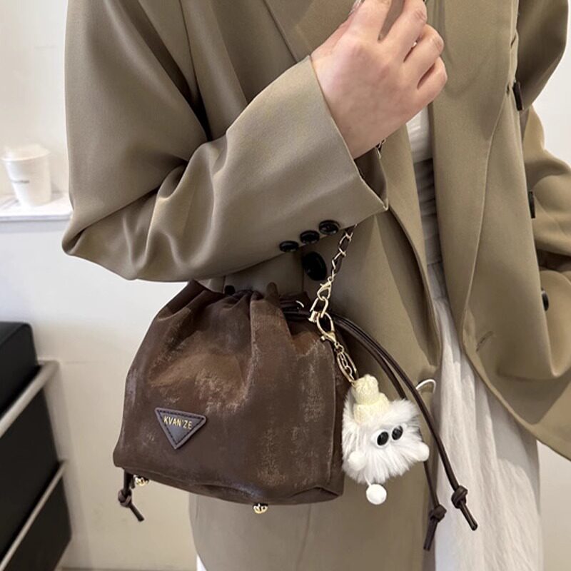 今年流行爆款小包包女2026新款时尚单肩包百搭链条斜挎水桶包通勤
