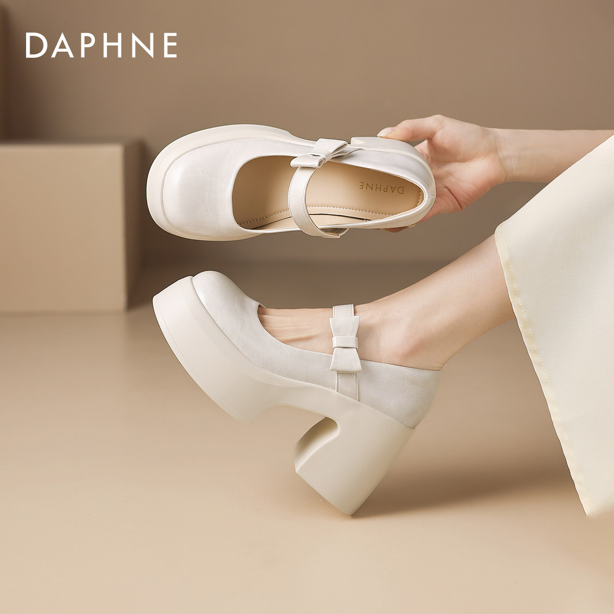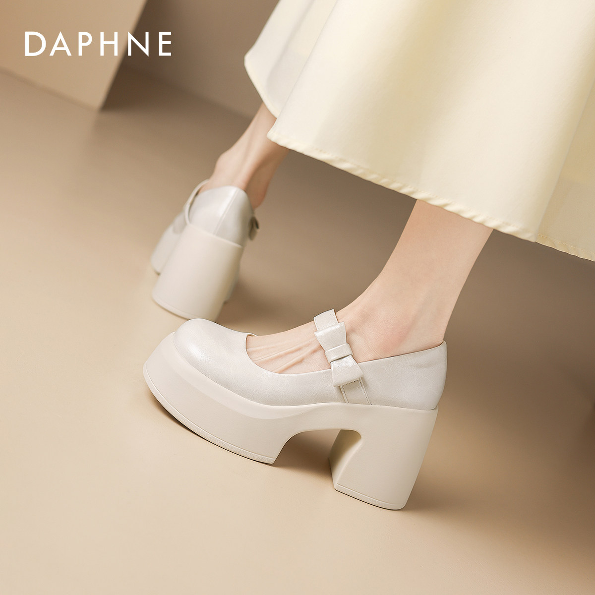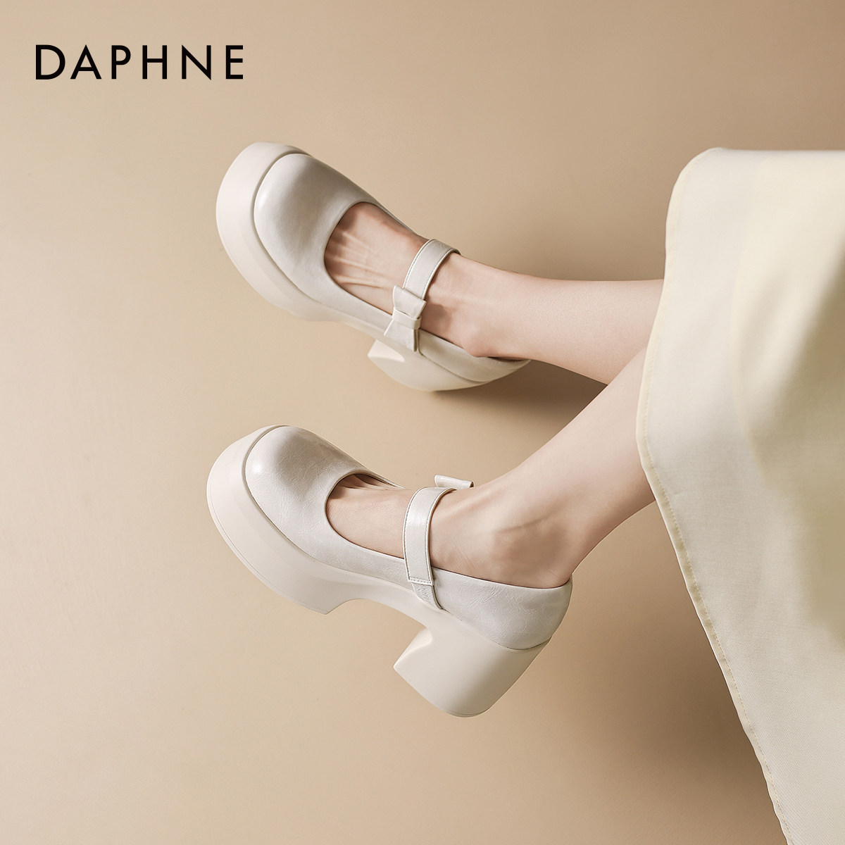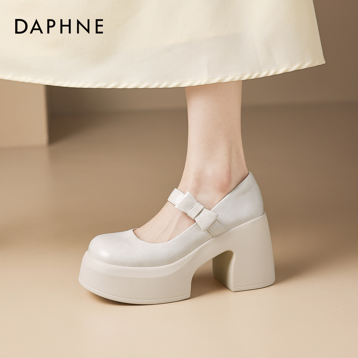 达芙妮白色法式玛丽珍女鞋2026新款春季厚底增高单鞋子高跟小皮鞋