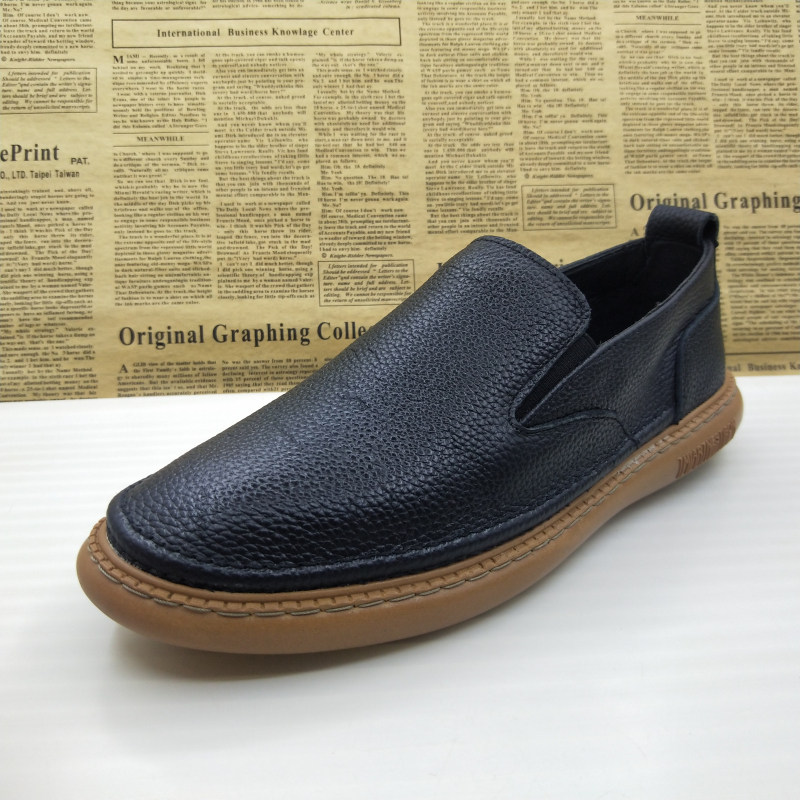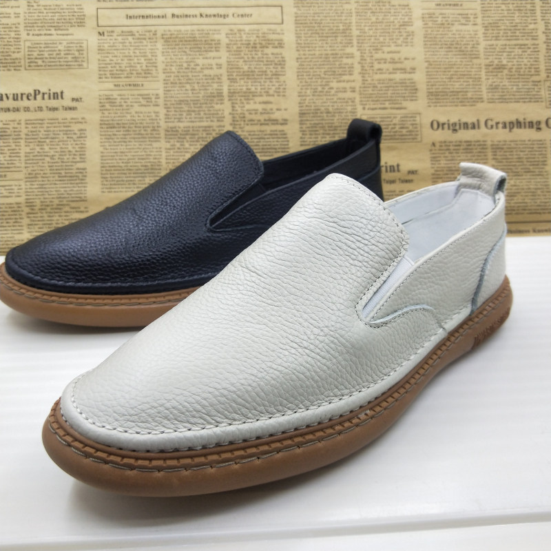 真皮头层牛皮上线休闲板鞋一脚蹬防滑透气平底百搭乐福鞋驾车男鞋
