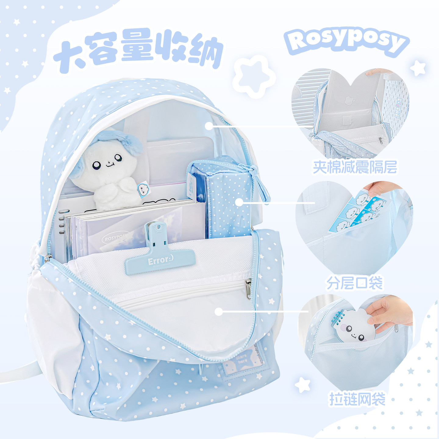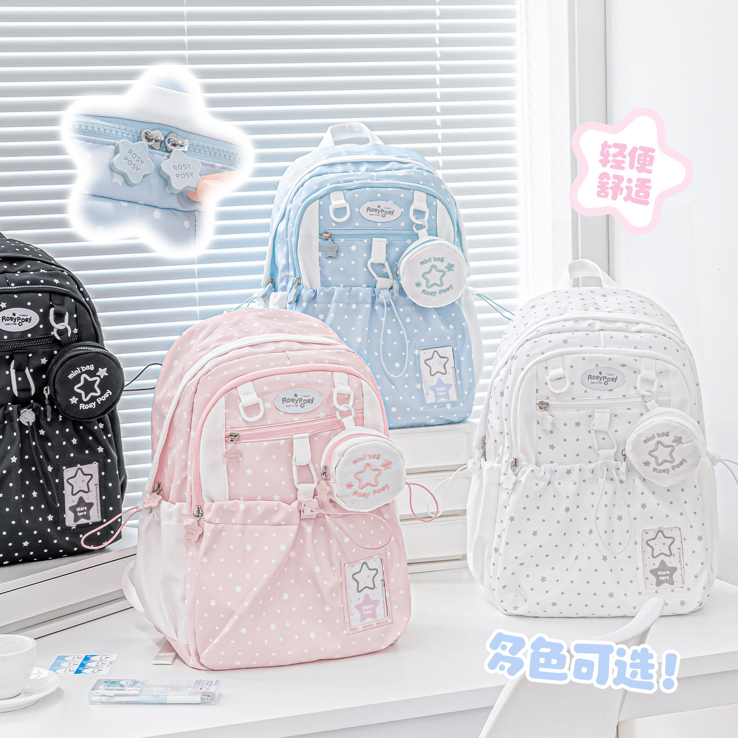 RosyPosy柔设书包女高中生双肩包女旅游轻便背包大容量书包初中女生双肩书包女小学生高颜值双肩背包小众ins