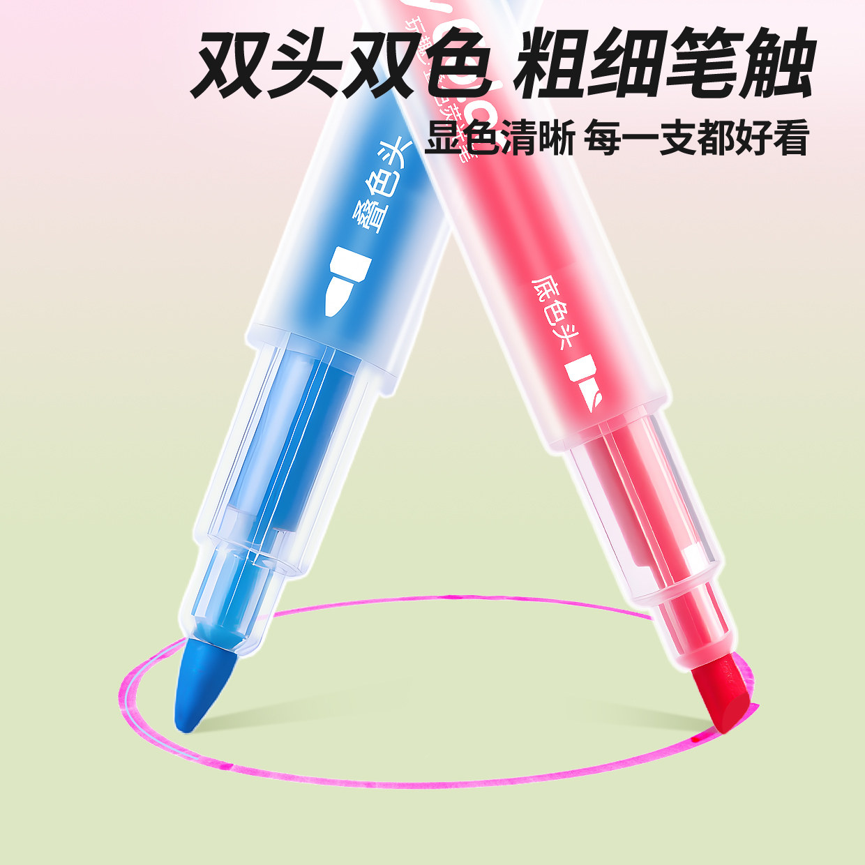 得力双头叠色荧光笔小学初中生专用少女划重点儿童彩笔亮晶晶无毒爆闪闪高颜值ins风记号笔标记笔