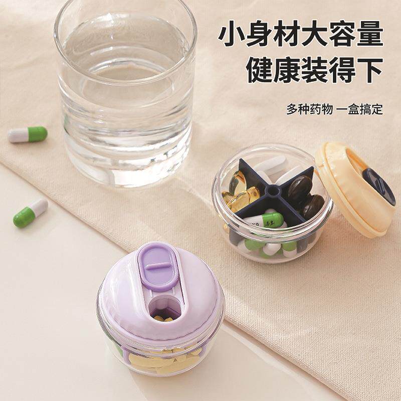 新款便携式小药盒分格密封药品收纳盒户外旅行四格透明药物胶囊盒