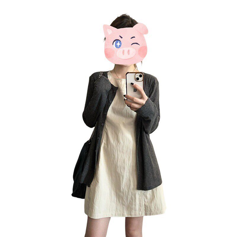 大码胖mm无袖背心连衣裙女夏季小个子收腰短裙长袖开衫两件套装潮