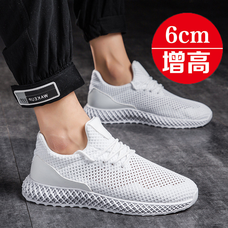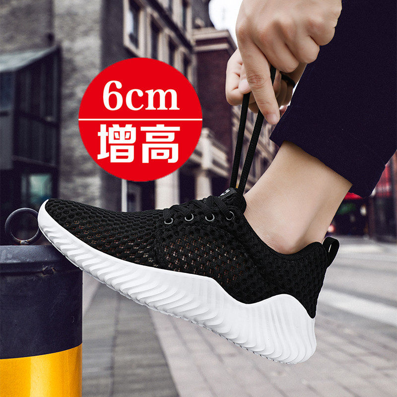 男鞋夏季内增高男士纯黑色运动休闲鞋透气防臭网面跑步鞋旅游鞋子