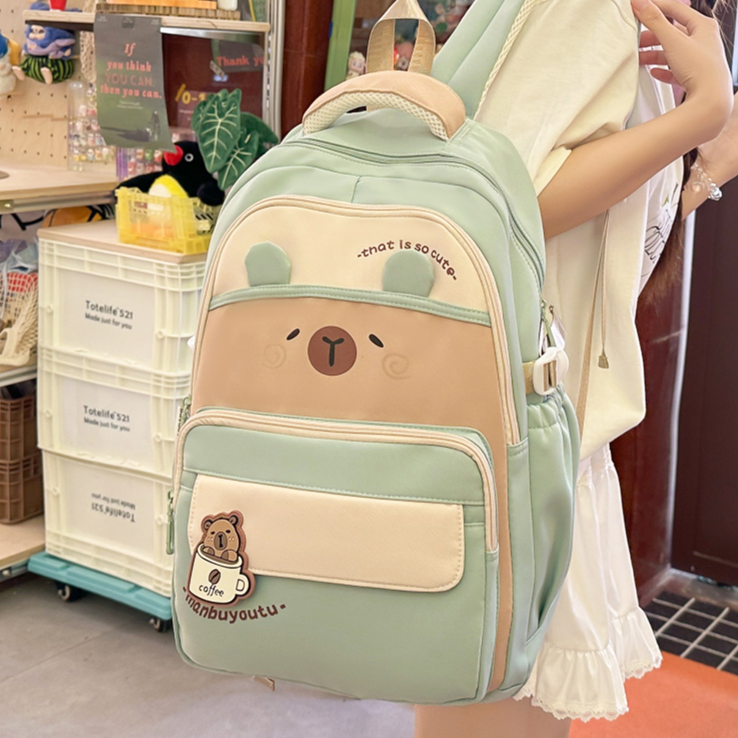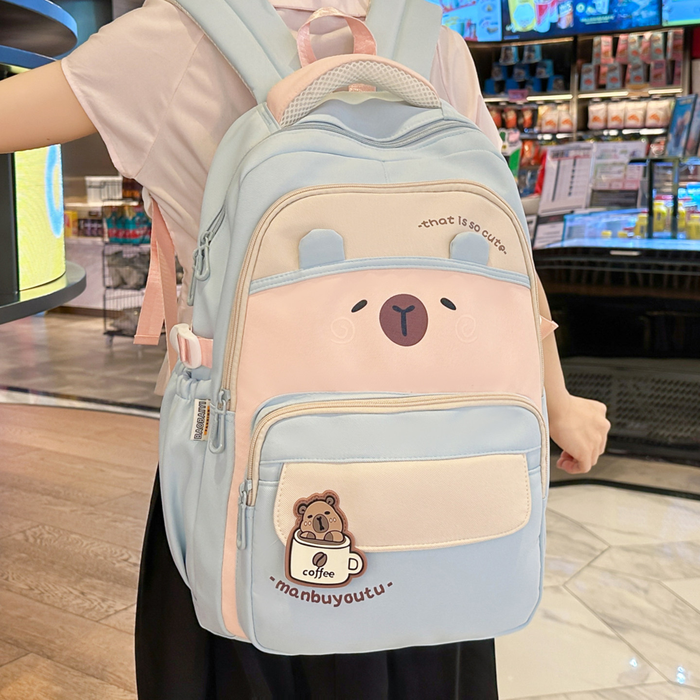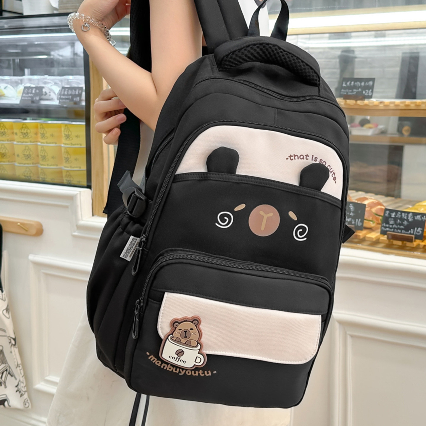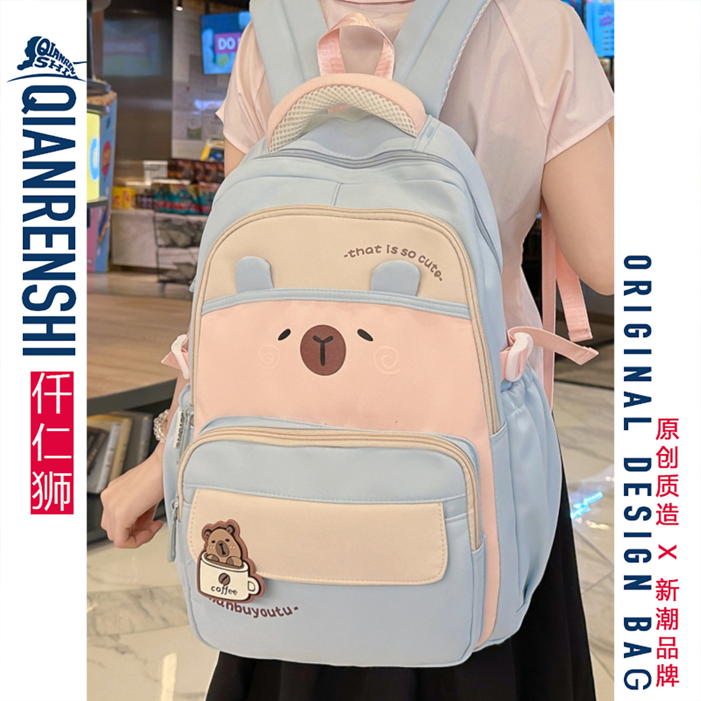 卡皮巴拉书包女生小学生黑色耐脏小众高颜值双肩包大容量轻便背包