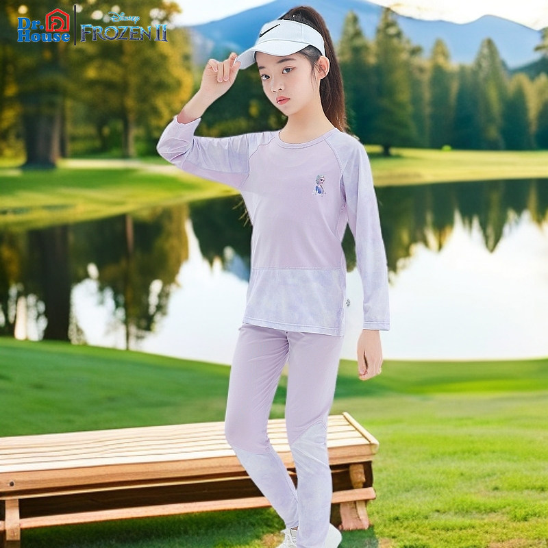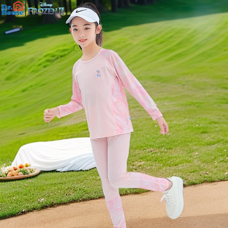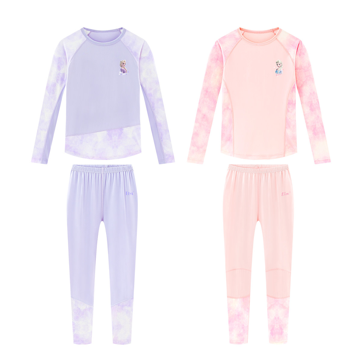 迪士尼童装女童速干衣套装女孩春秋长袖T恤打底裤2件套瑜珈运动服