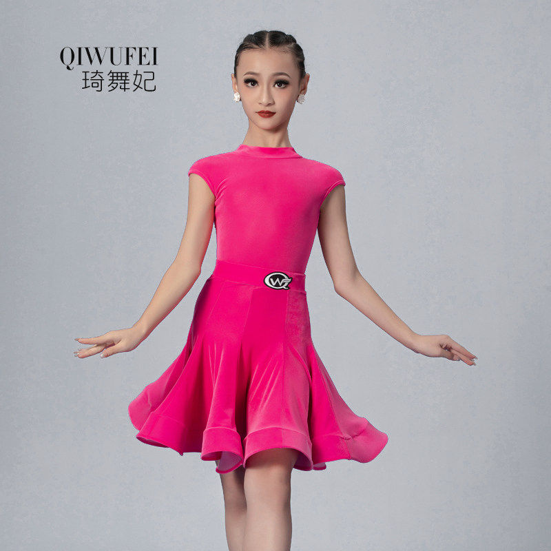 少儿拉丁舞比赛服装新款女童专业丝绒考级规定标准服夏季套装短袖