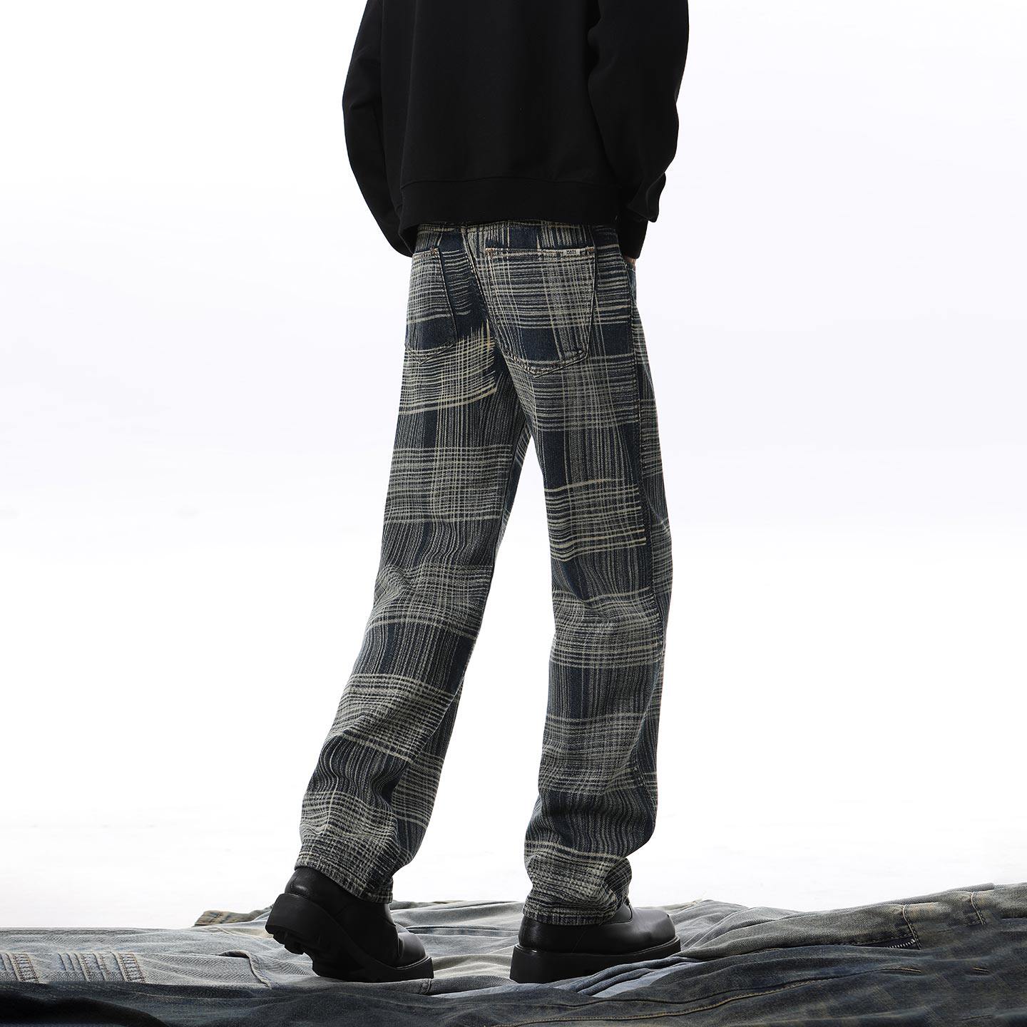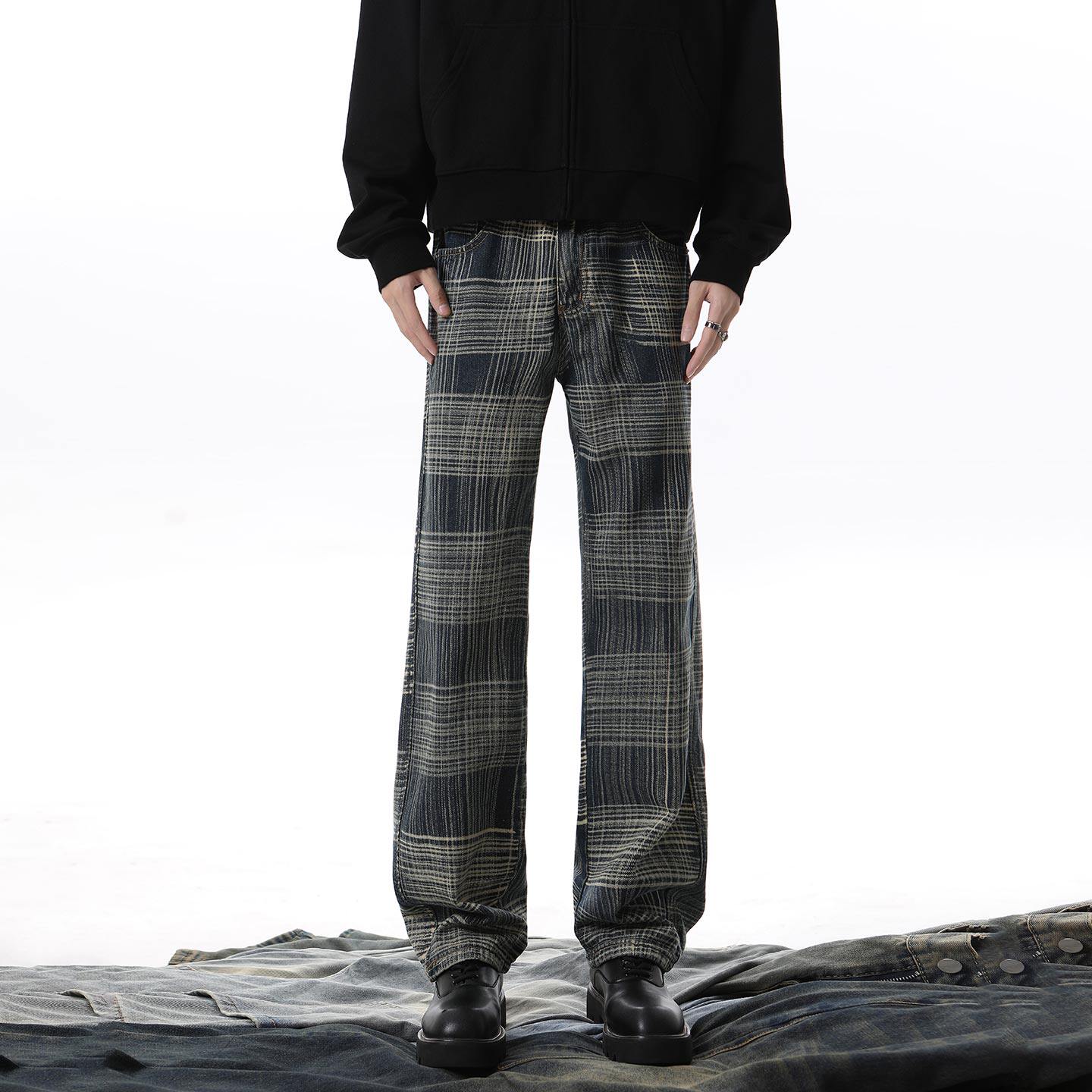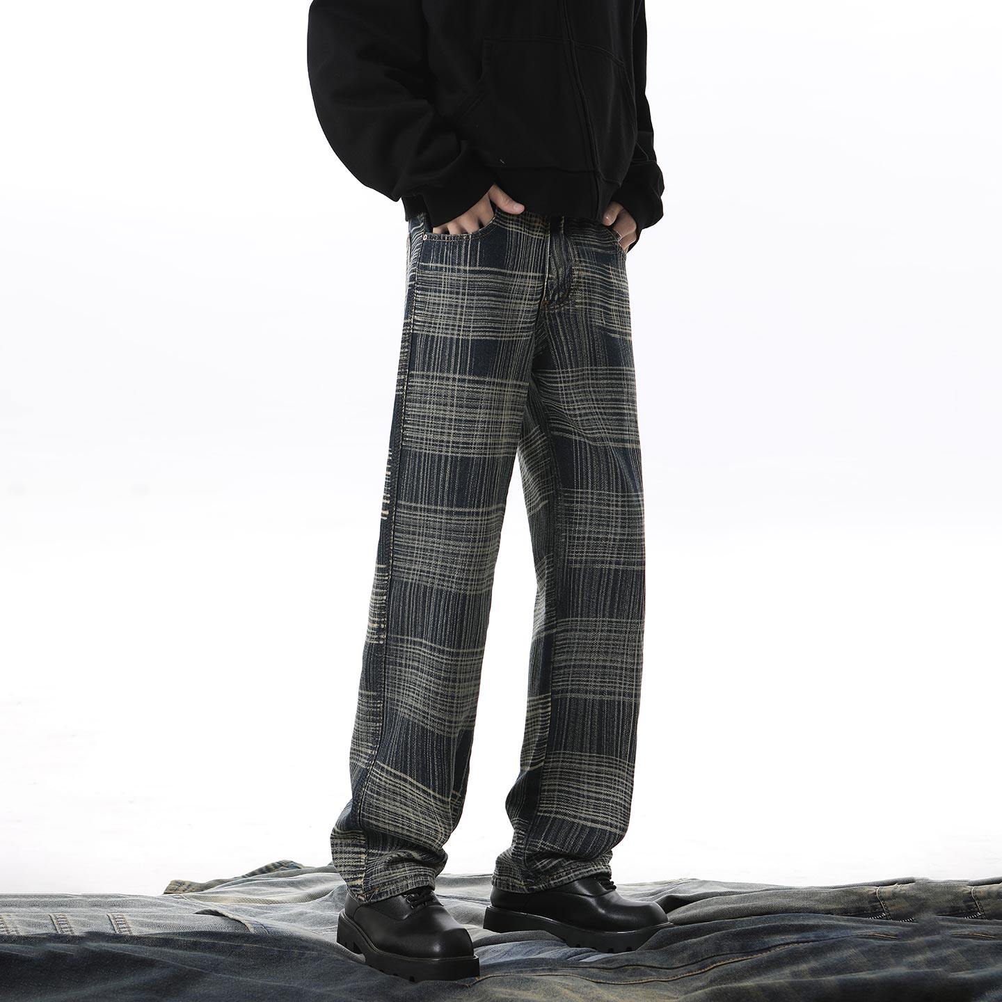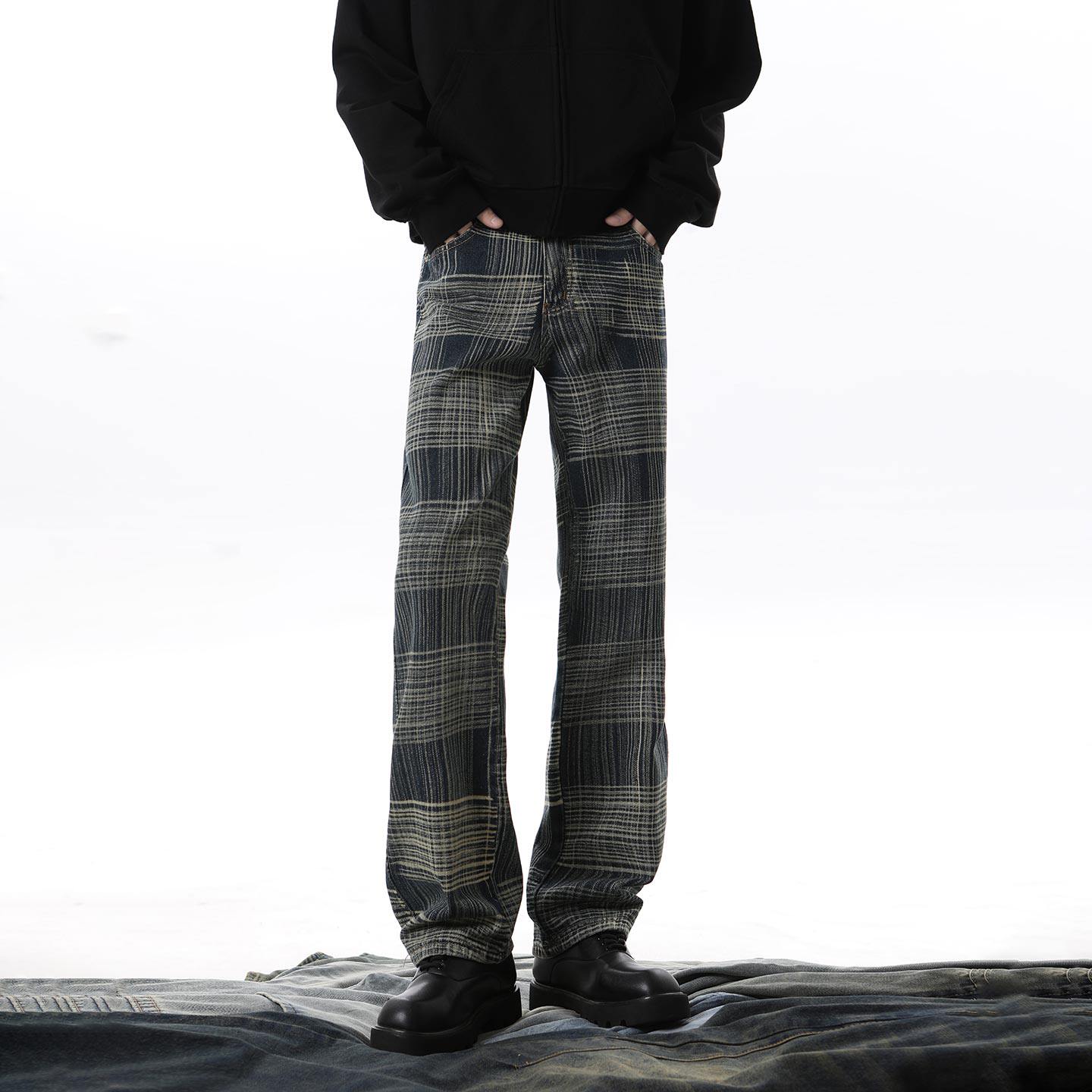 牛仔裤男款爆款2026新款格纹宽松直筒裤春秋季高街潮牌高级感裤子