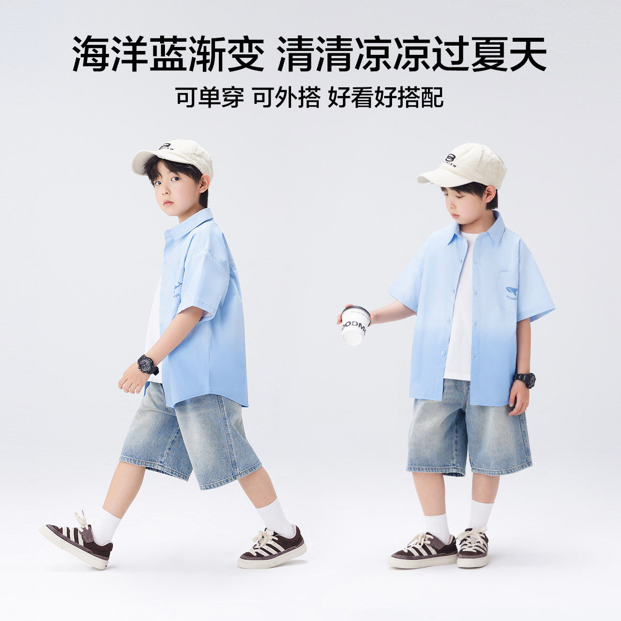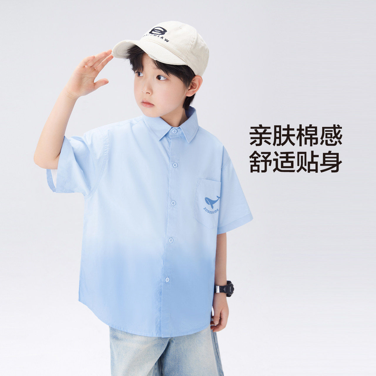 左西童装男童衬衫纯棉儿童短袖T恤夏季外套2026新款男孩洋气上衣