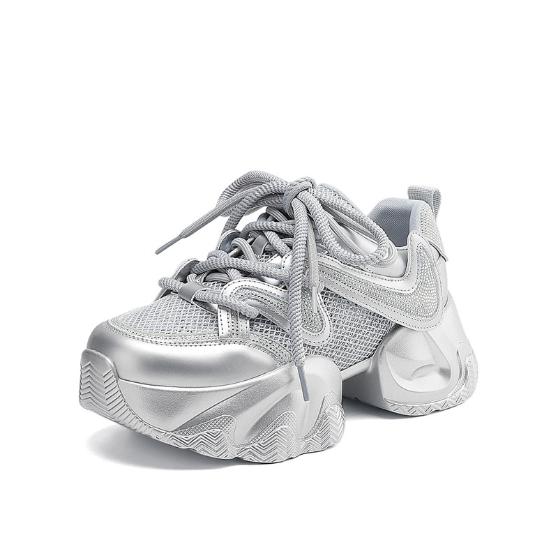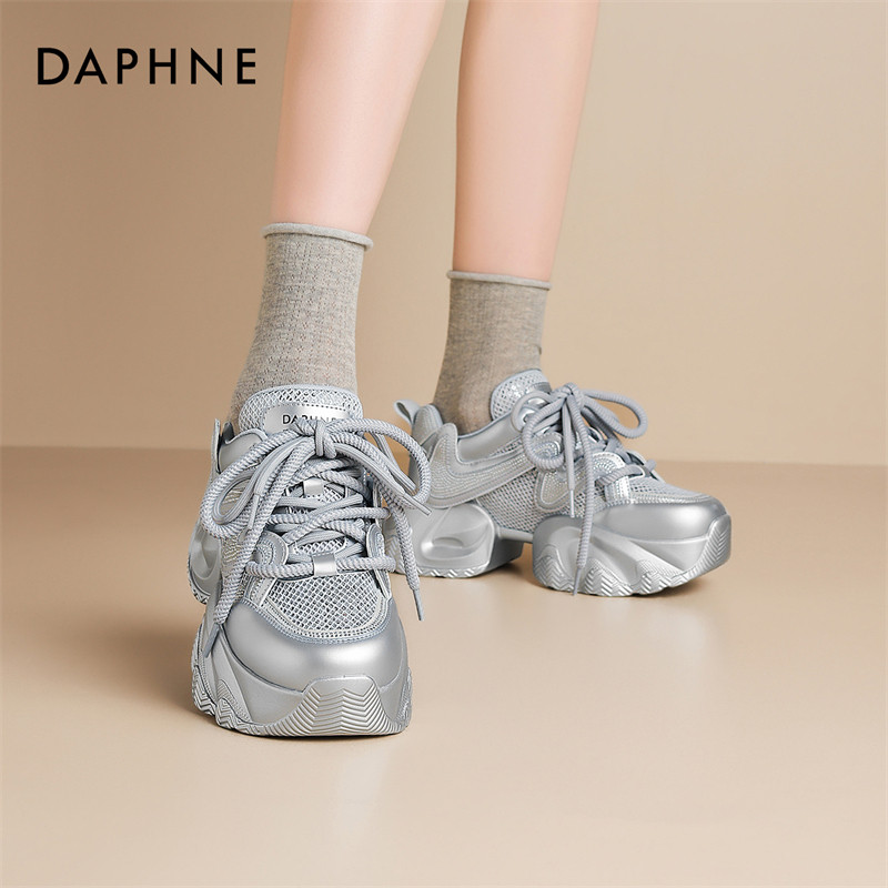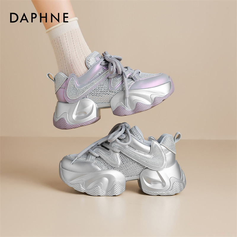 达芙妮银色老爹鞋女鞋2026新款夏季薄款网面透气不闷脚增高运动鞋