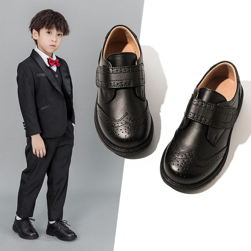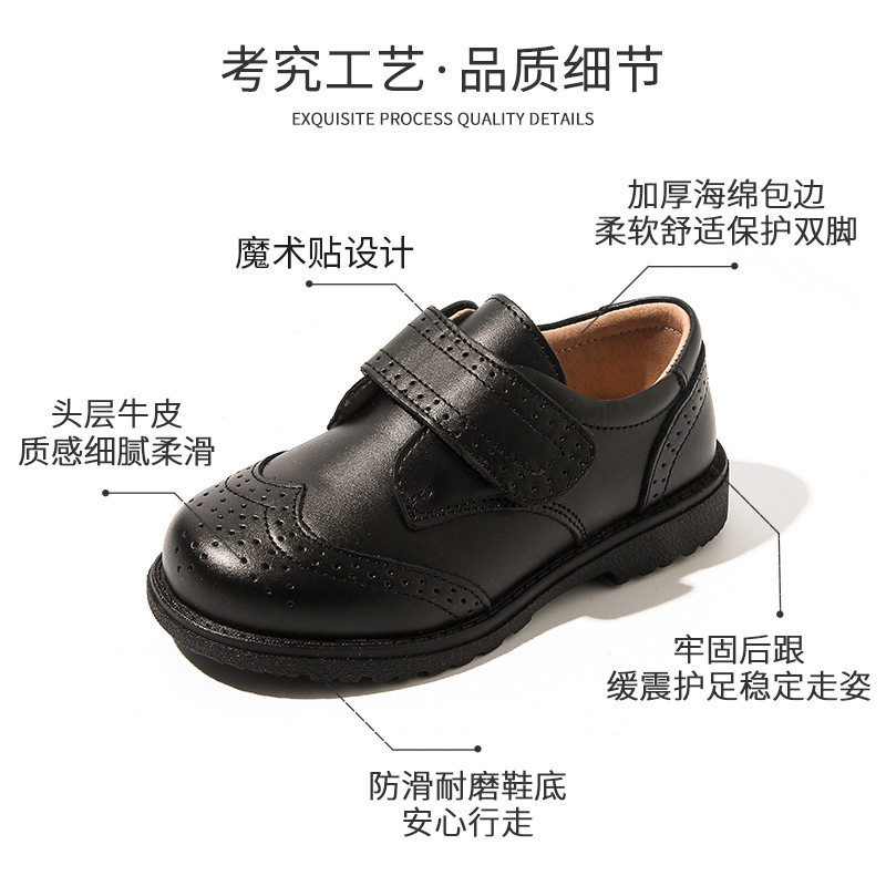 男童小皮鞋英伦风2025春软底小学生黑色表演出女童真皮学院风单鞋