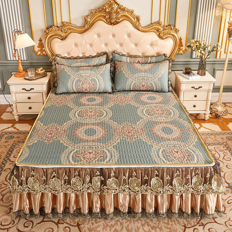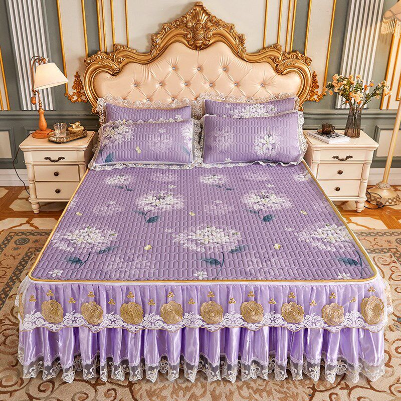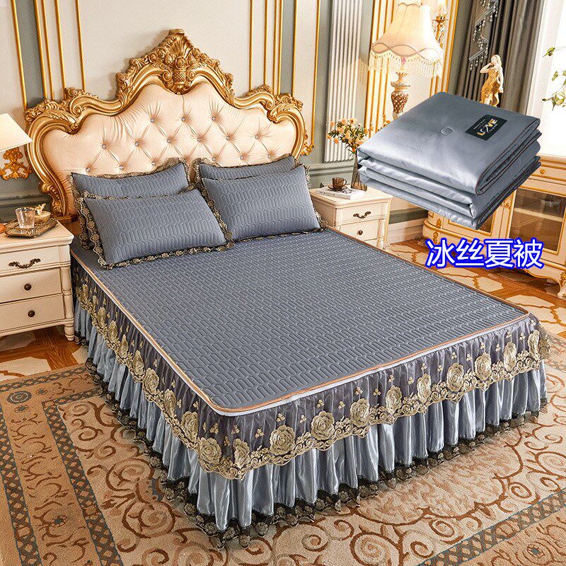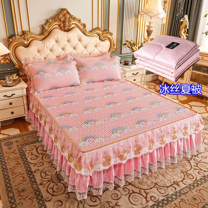 夏日床上冰丝乳胶凉席四件套带被子可机洗2.2米床裙夏季2023新款