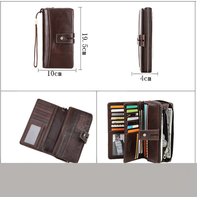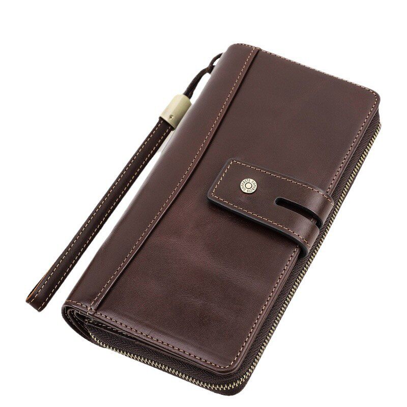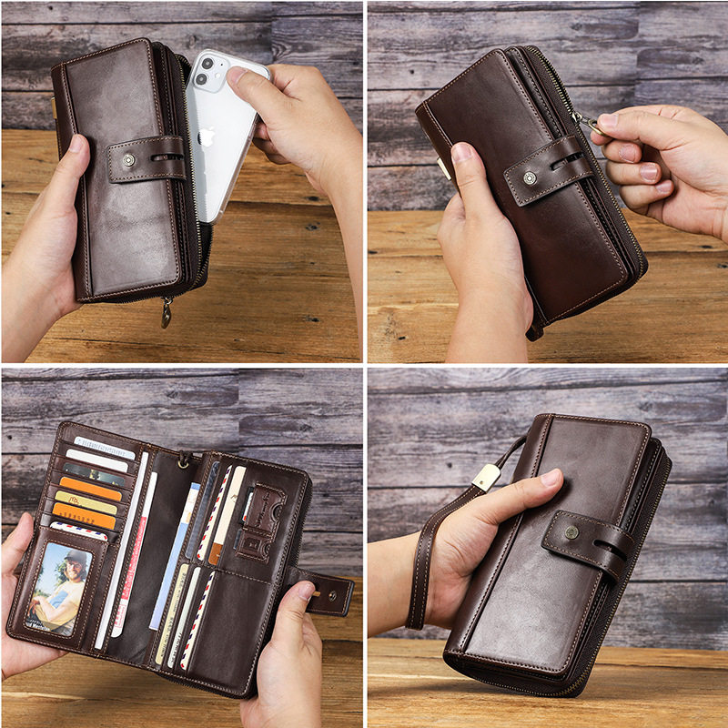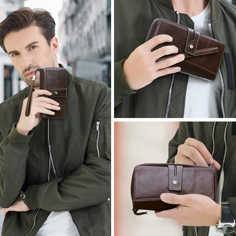 复古天然头层纯全牛皮真皮男士大容量手腕手拿包长款钱包手机包
