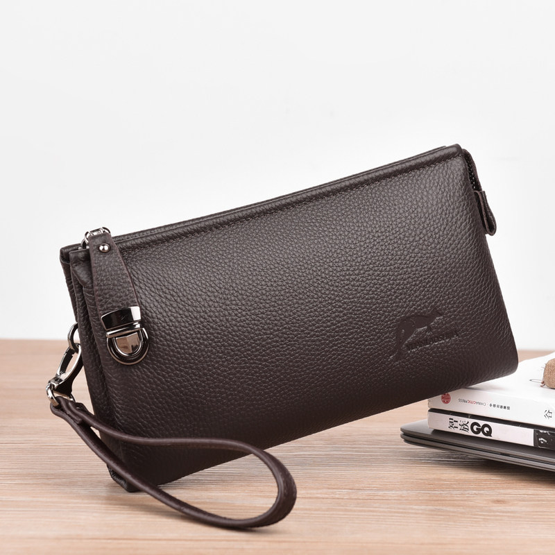 真皮男士手拿包钱包商务休闲横款纯色包包头层牛皮大容量双层手包