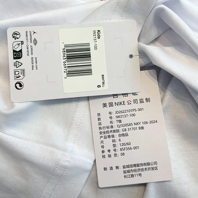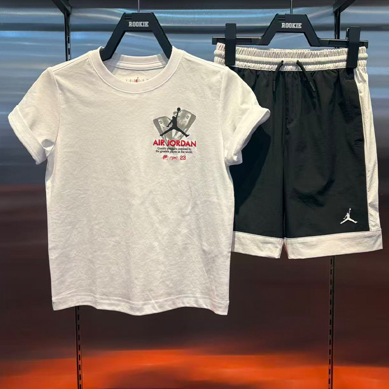 JORDAN乔丹儿童纯棉圆领印花短袖26年夏男女运动休闲T恤JD2622101