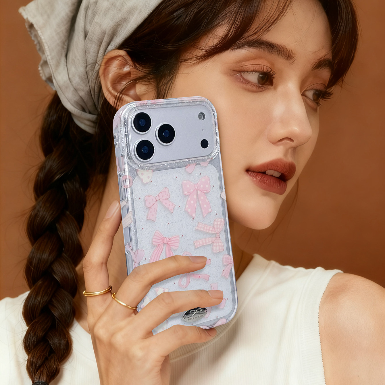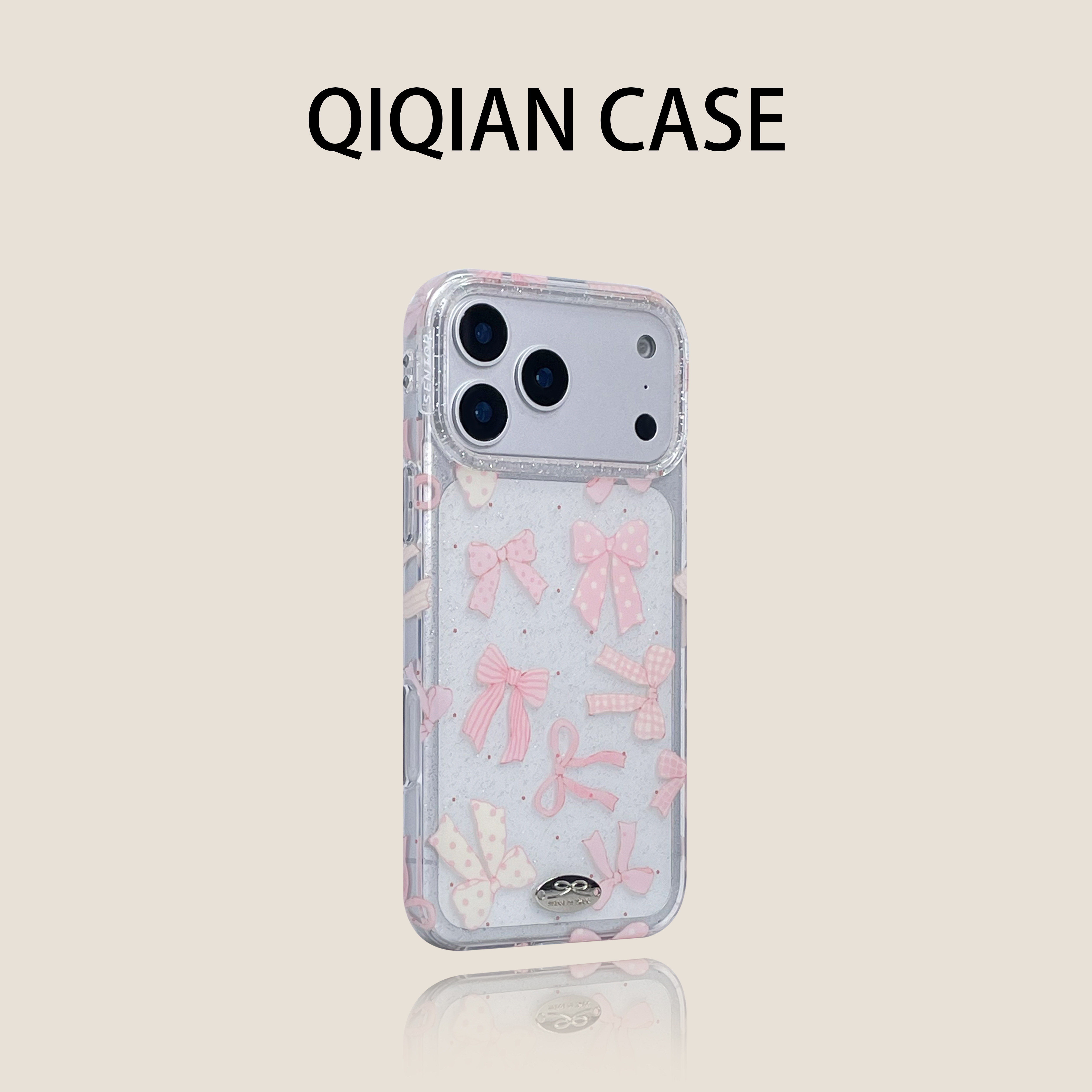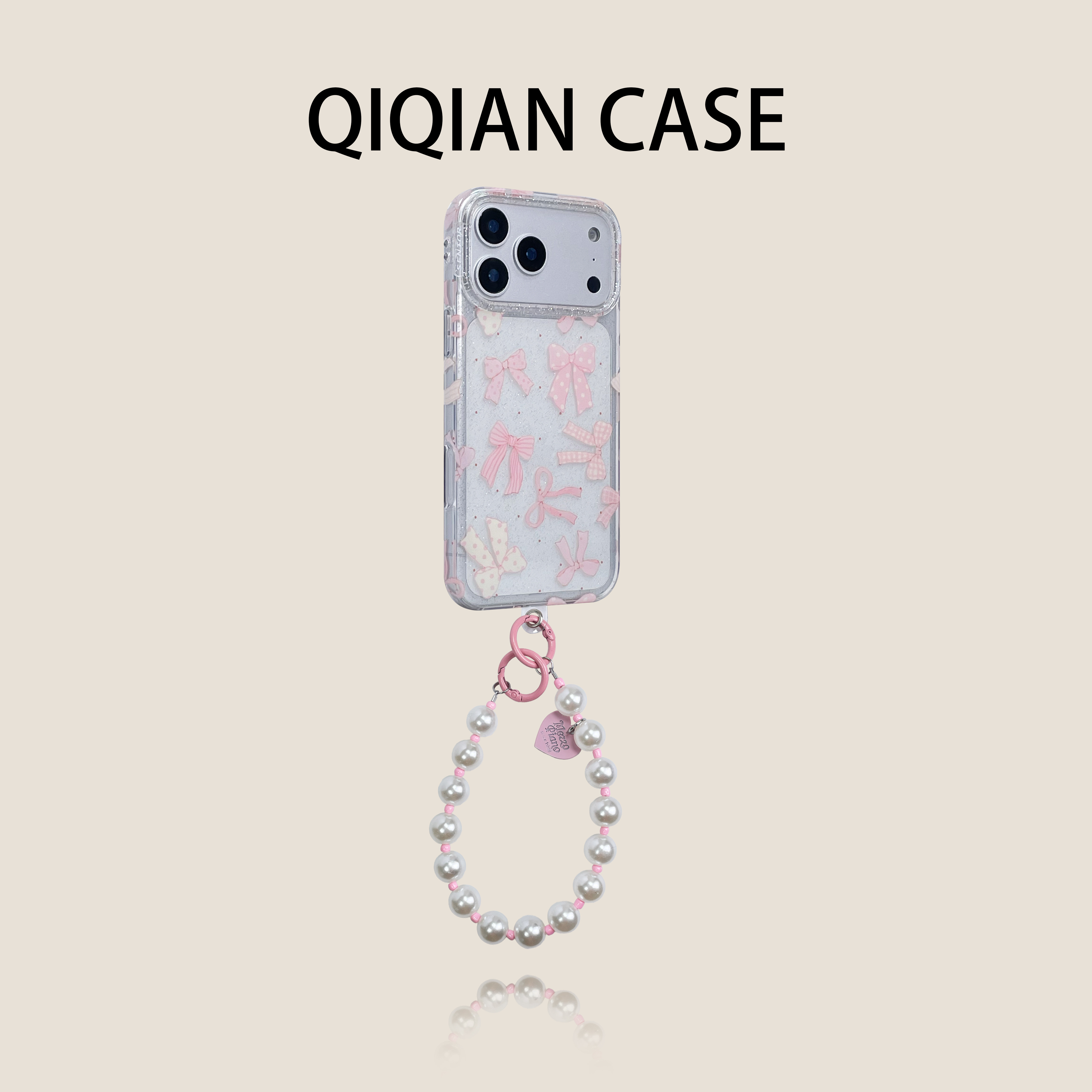 启乾 ins韩系透明闪粉满屏波点蝴蝶结腕带iPhone17/16手机壳适用苹果15/14promax硬壳13链条挂绳可爱少女心