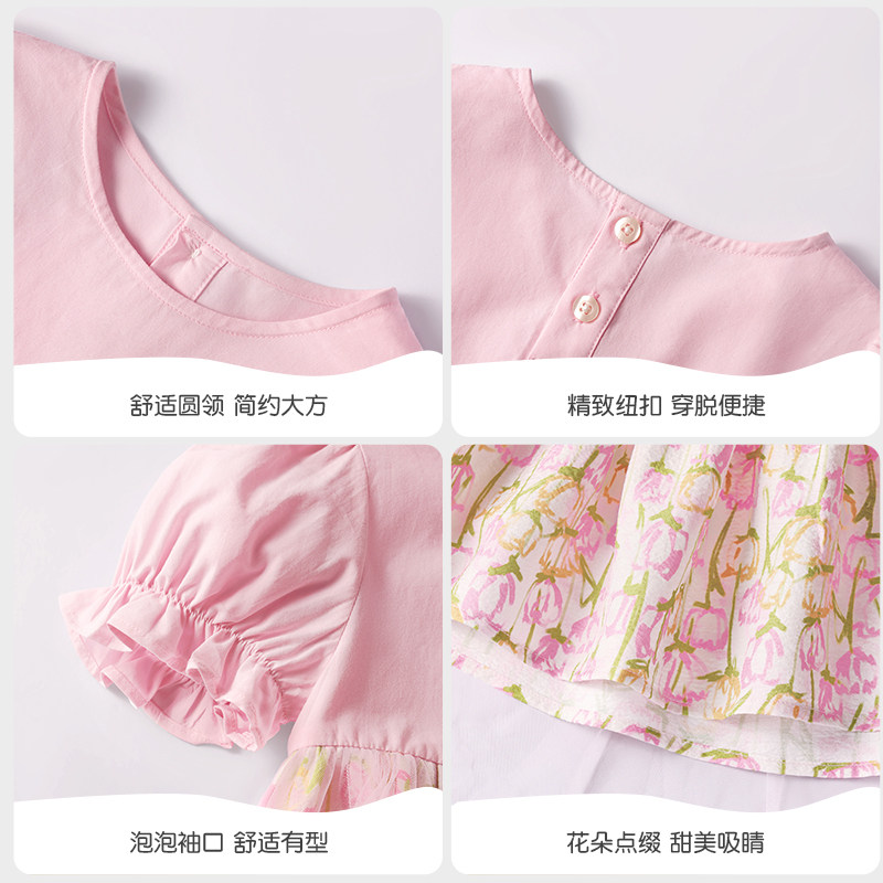 拉夏贝尔女童连衣裙夏季2026年新款女孩洋气公主裙宝宝高级裙子