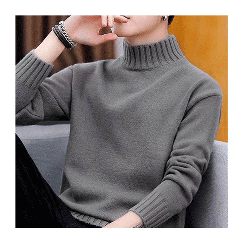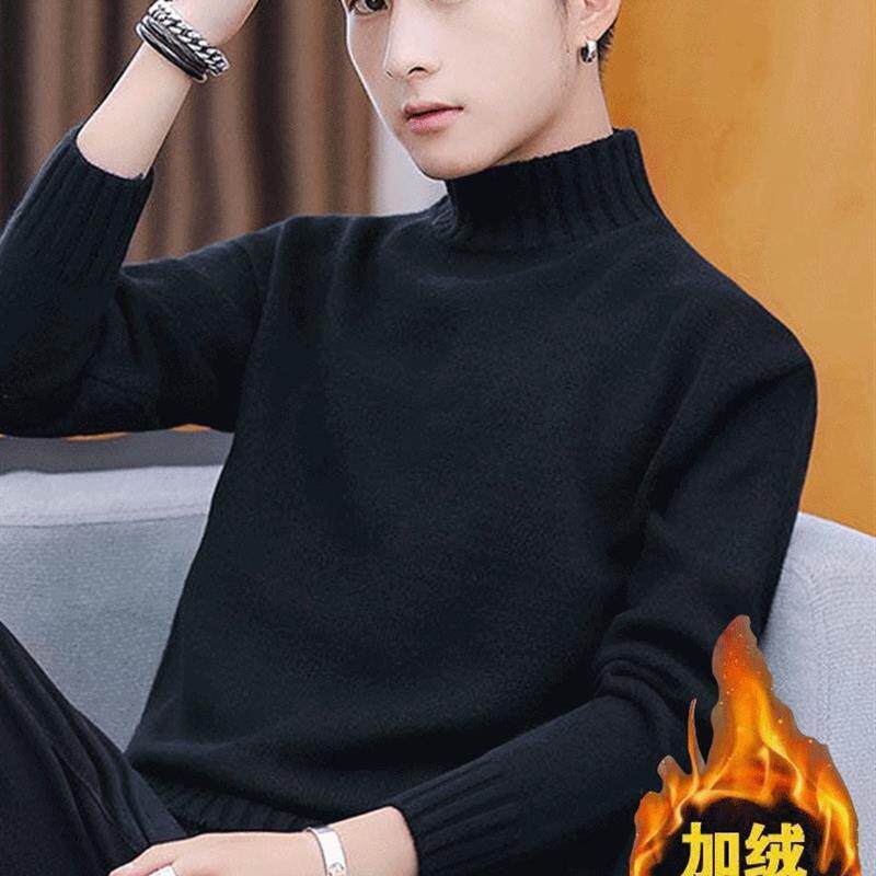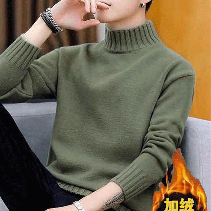 一体加绒半高领毛衣男士男款冬季加厚套头新款中年保暖打底针织衫