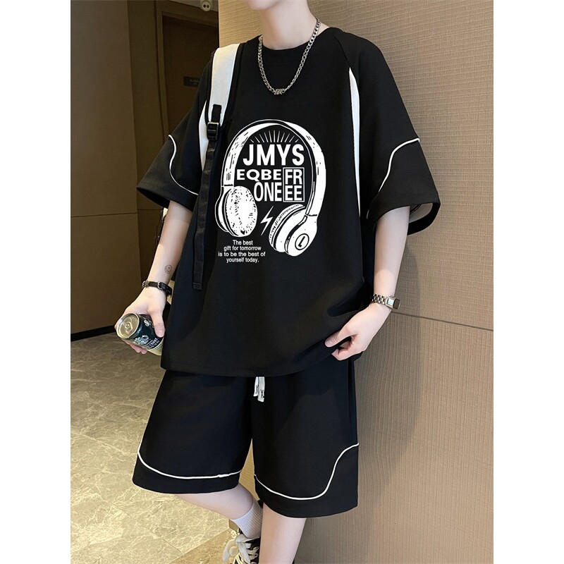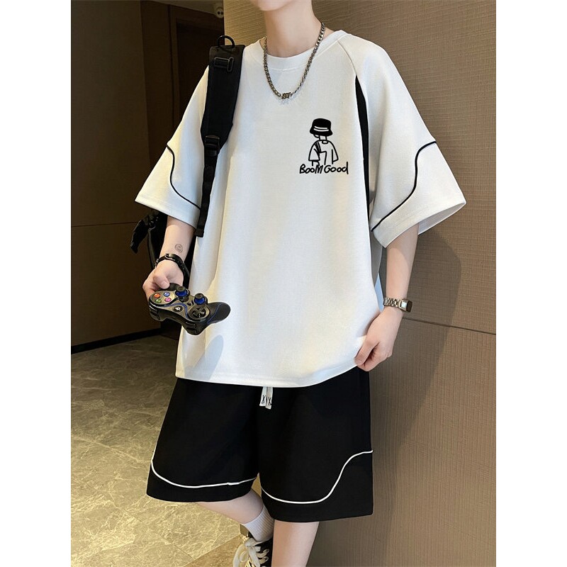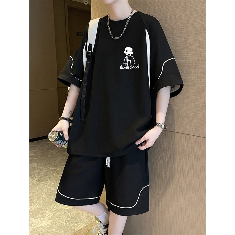 夏季休闲运动短裤套装男初中高中学生青少年大童冰丝速干短袖t恤