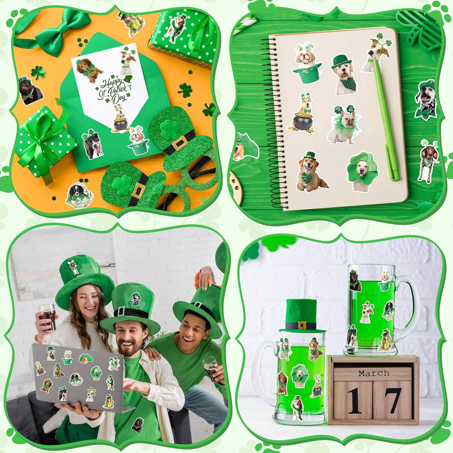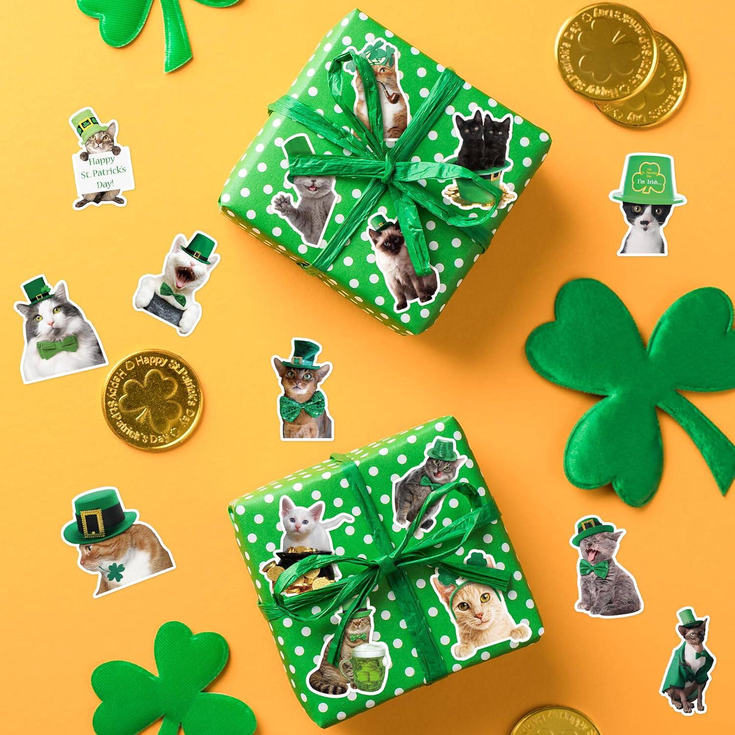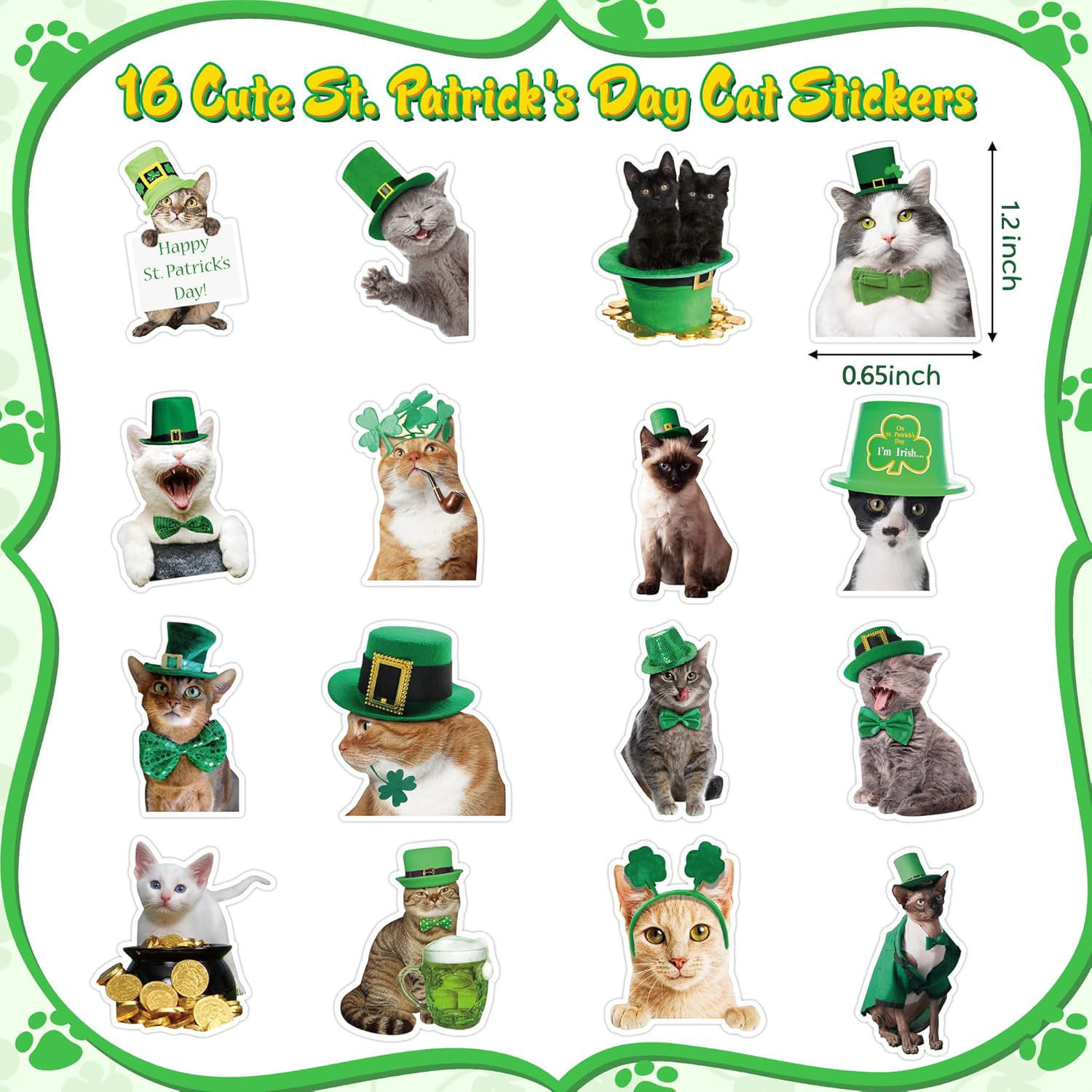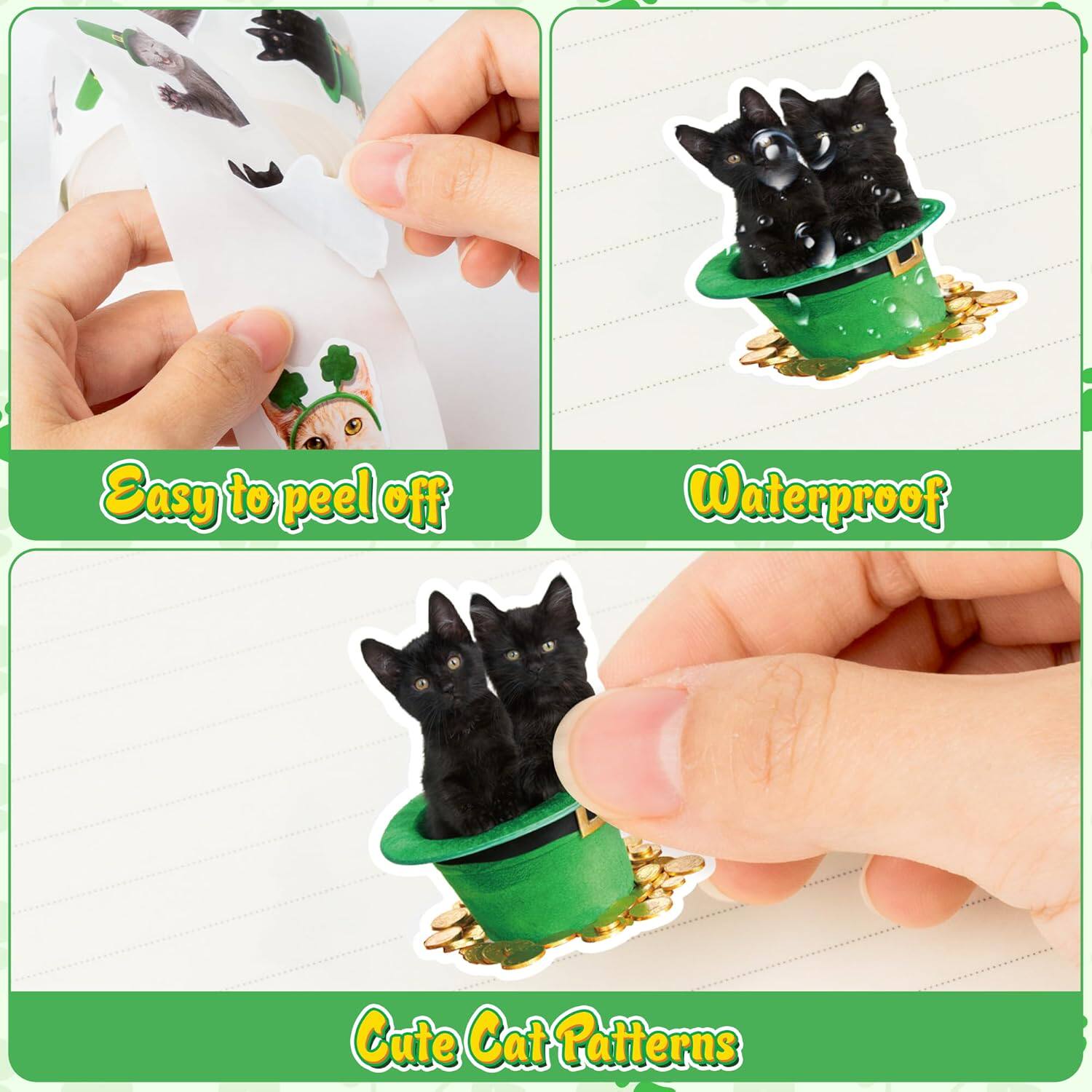 500张圣帕特里克节小猫咪装饰贴纸儿童玩具礼盒包装封口标签贴画
