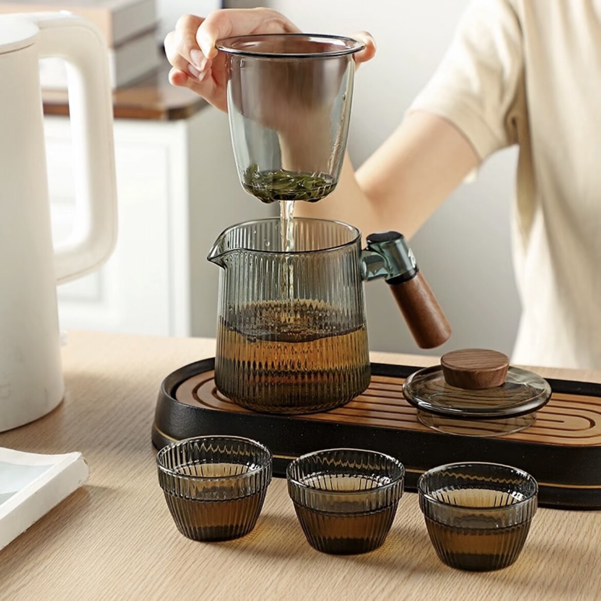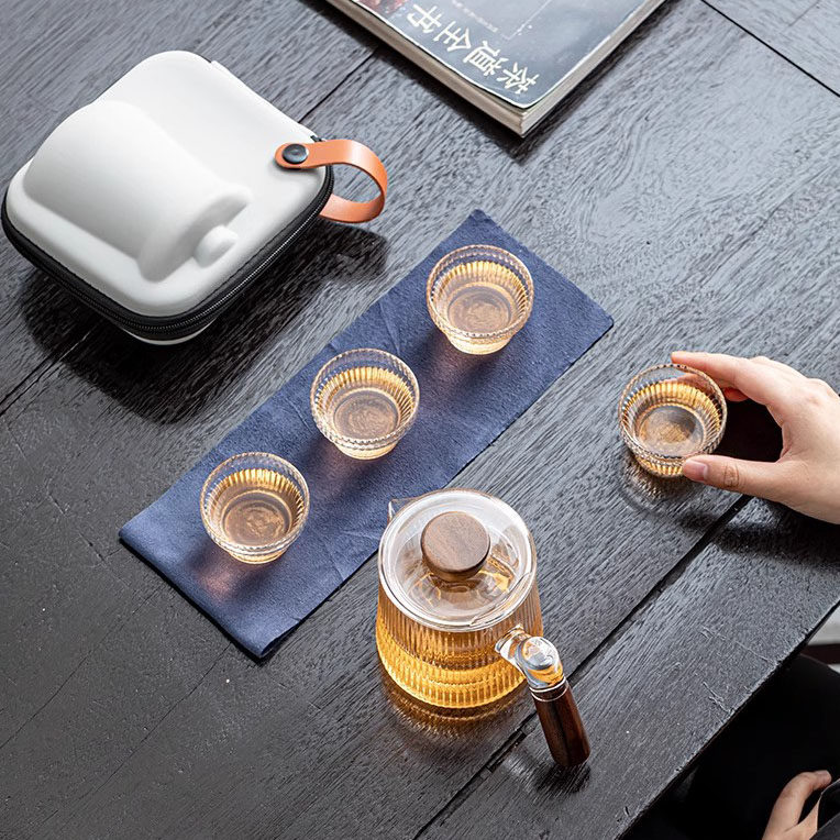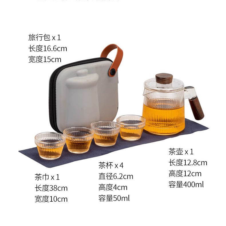 耐热玻璃旅行茶具套装户外露营便携式茶具茶壶快客杯可明火煮茶