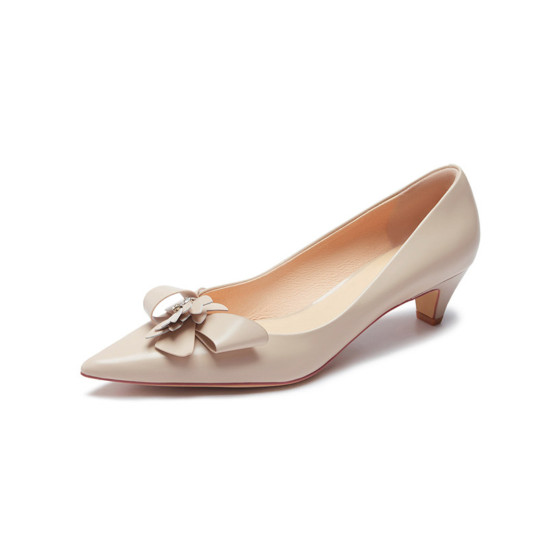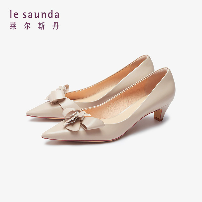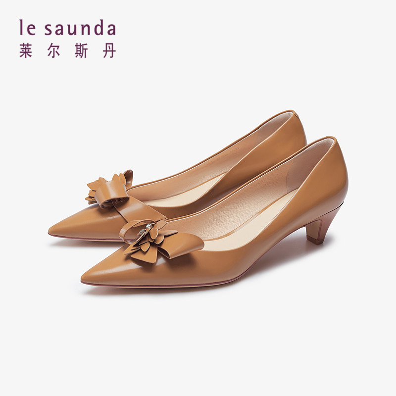 特价 莱尔斯丹春夏新款时尚优雅尖头饰花通勤中跟女鞋单鞋5M43304