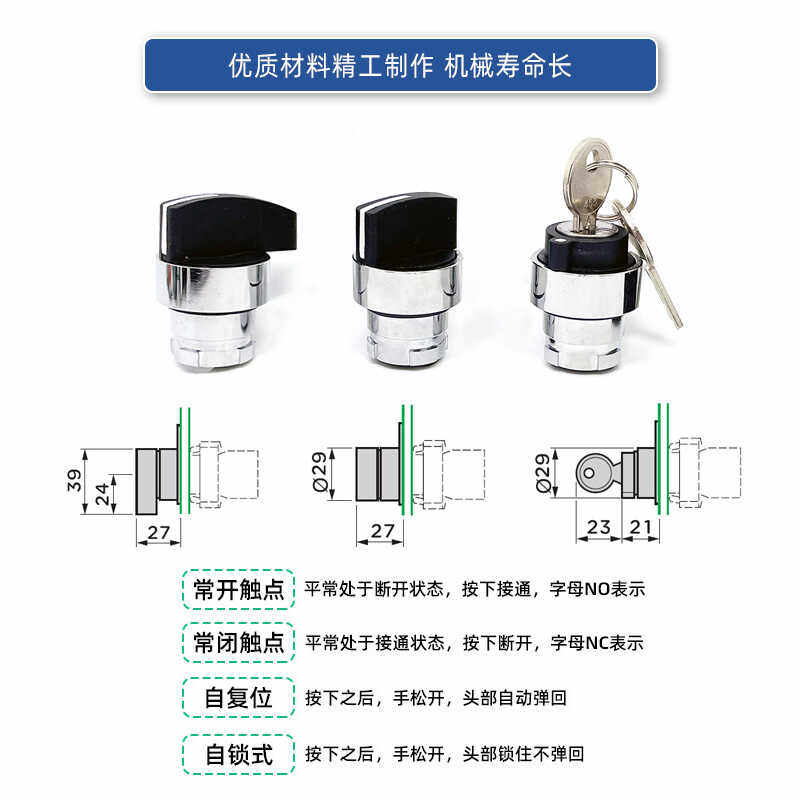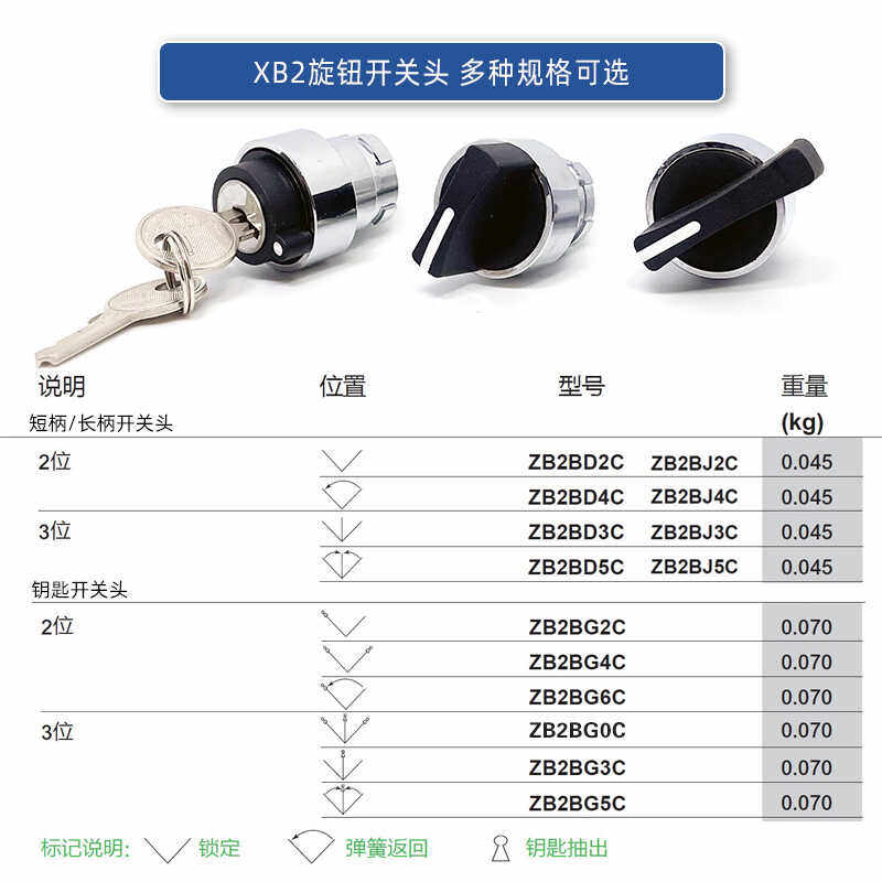 ZB2BD2C金属按钮开关旋钮头三档自锁ZB2-BD3C三位开关头选择按钮