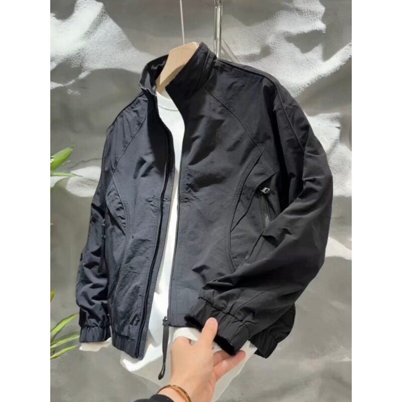 春季新款拼接纯色拉链薄款立领夹克男士通勤百搭翻领上班外套男款